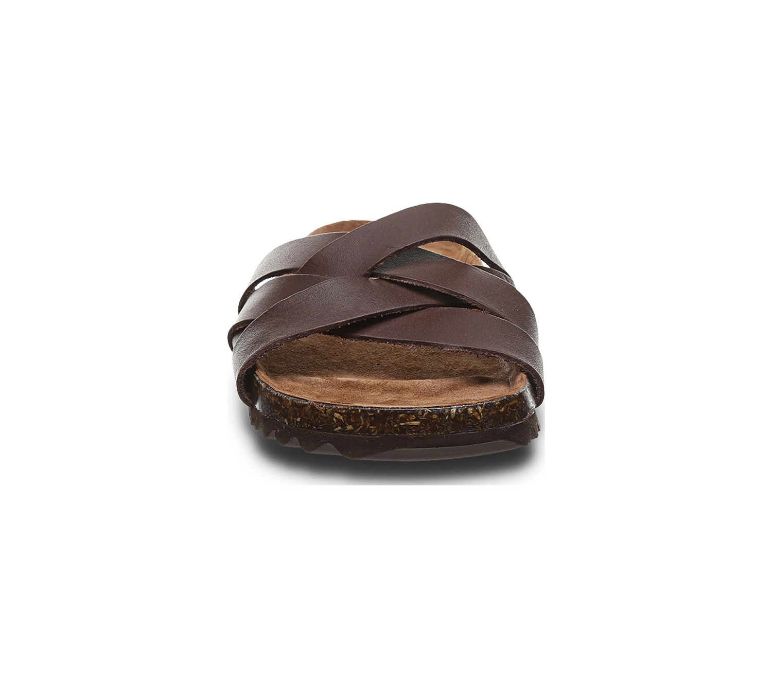 - Leather upper in a comfort footbed sandal with an open round toe