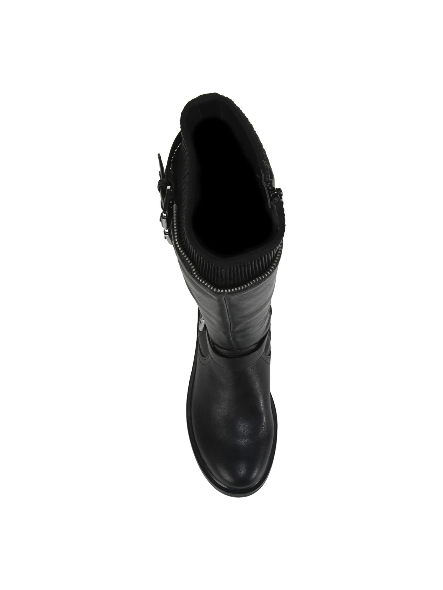 - Buckled strap details on boot shaft