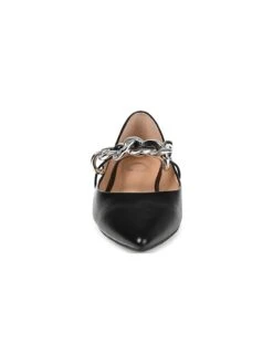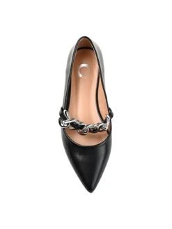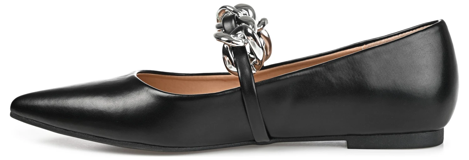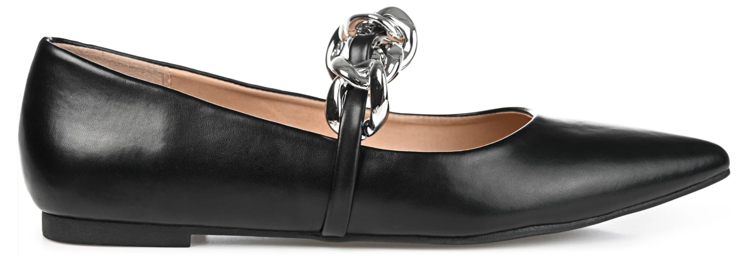 The ballerina flat with an edgy twist, the Women’s Metinaa Pointed Toe Flat by Journee Collection. These adorable ballerina flats feature soft vegan leather embellished with a chain accent and a pointed-toe. A tiny block heel and a padded insole complete the design for all-day comfort.