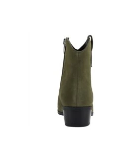 - Leather or suede upper in a dress bootie style with a pointed toe
