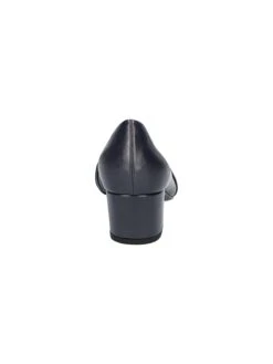 - Synthetic leather upper in a pump style with an almond toe