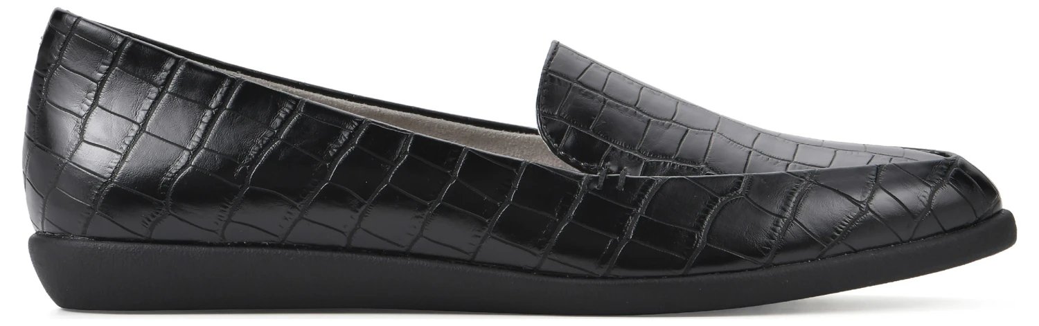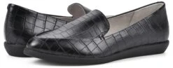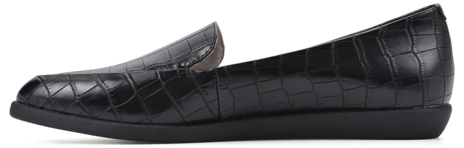 - Faux leather upper in a loafer style with an almond toe