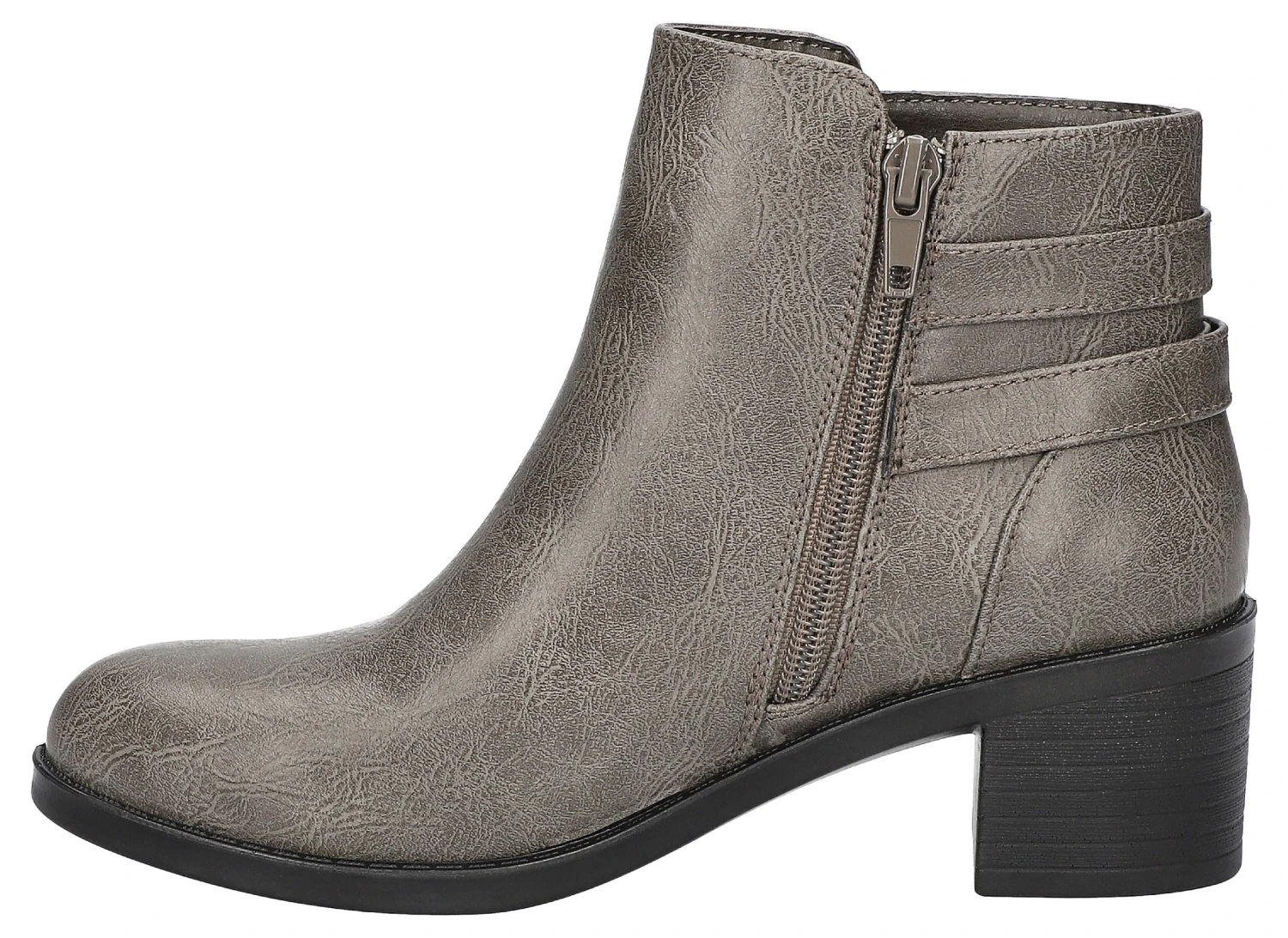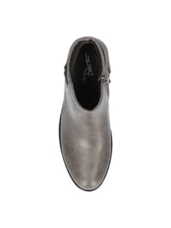 - Synthetic leather upper in a bootie style with a round toe