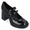 - Synthetic leather upper in a dress pump style with an almond toe