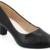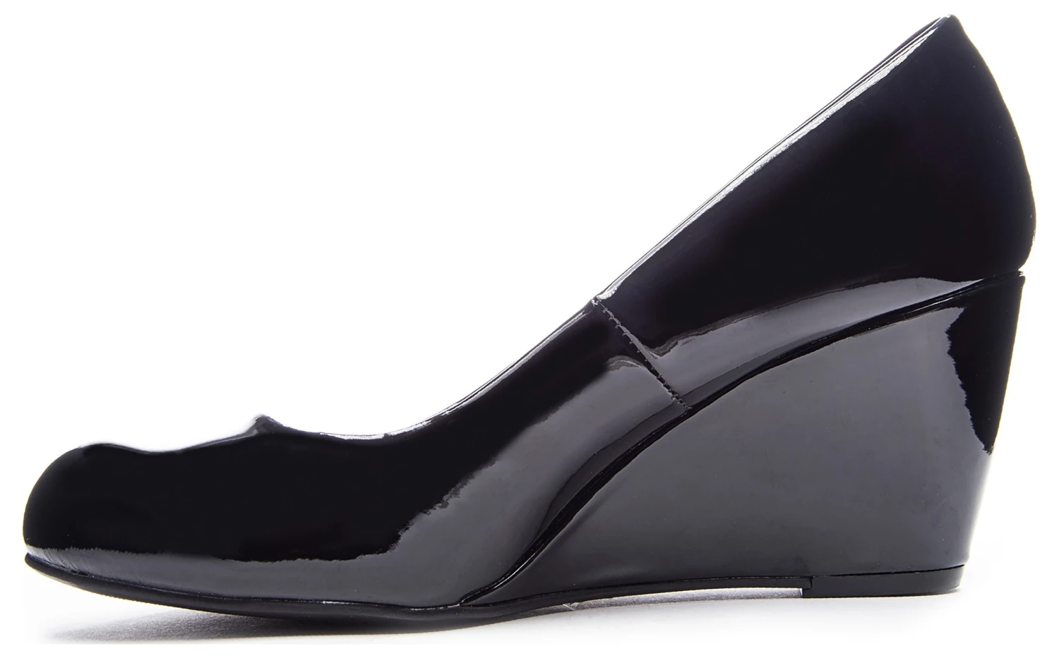 - Fabric or Patent Leather upper in a pump style with a round toe
