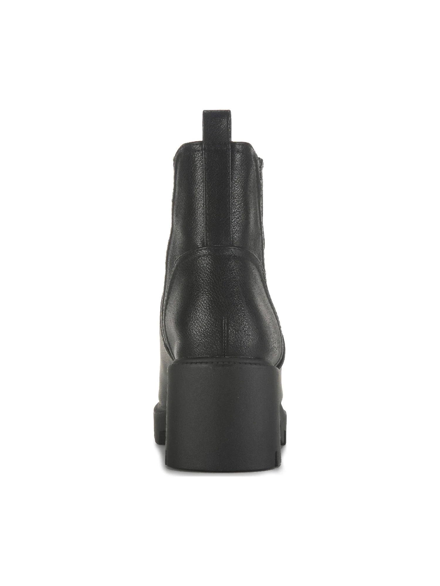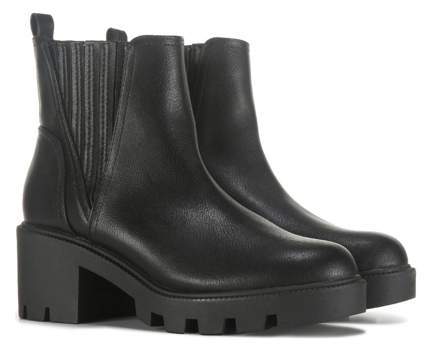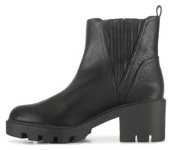 - Faux leather upper in a chelsea bootie style with a round toe