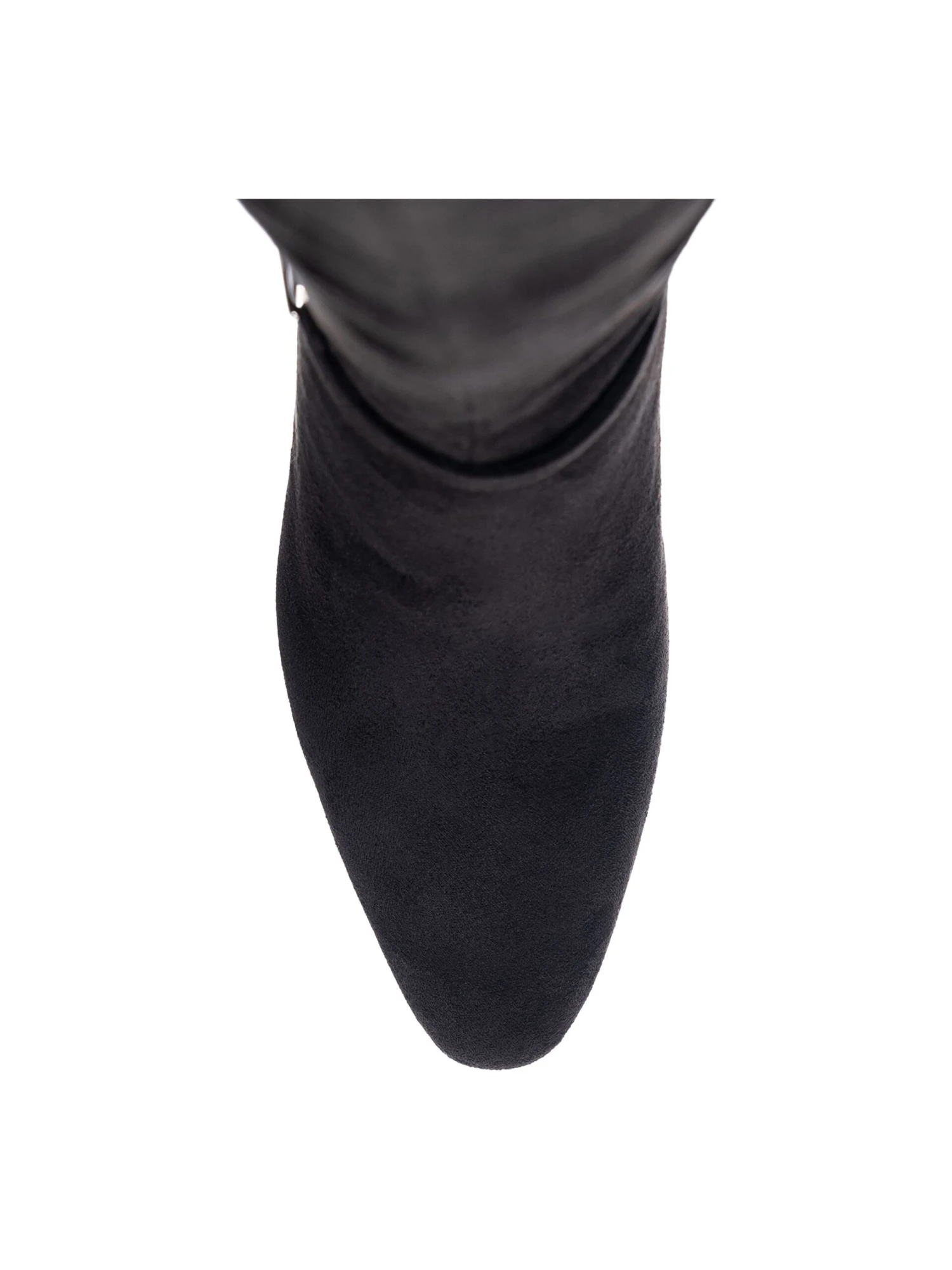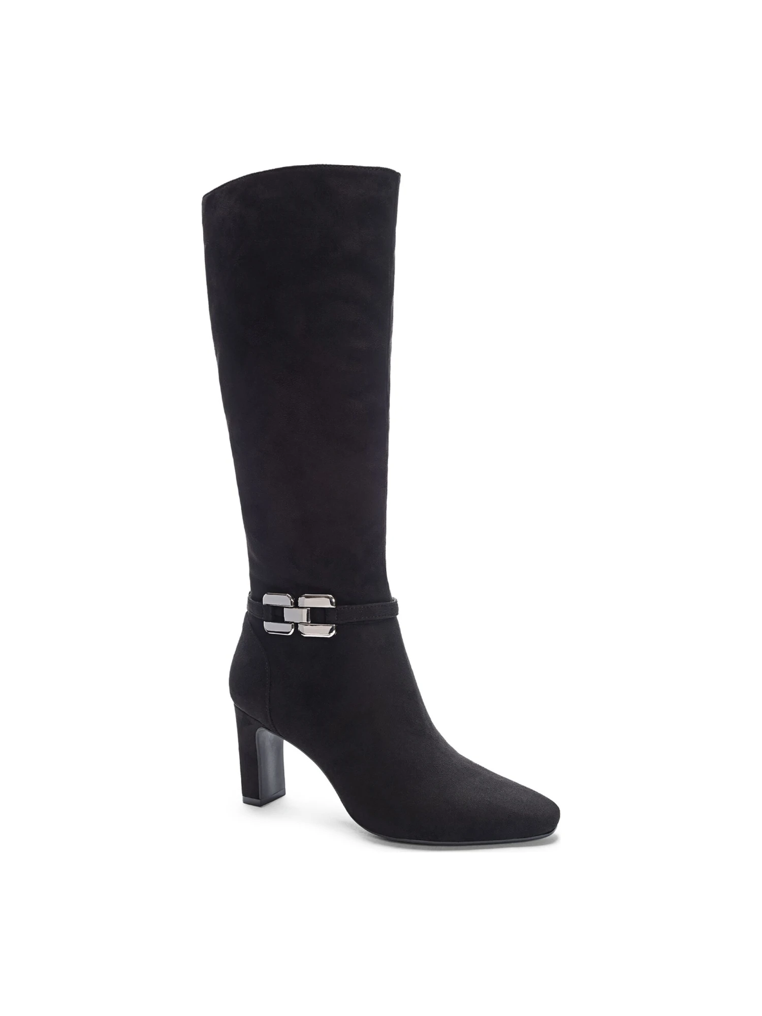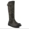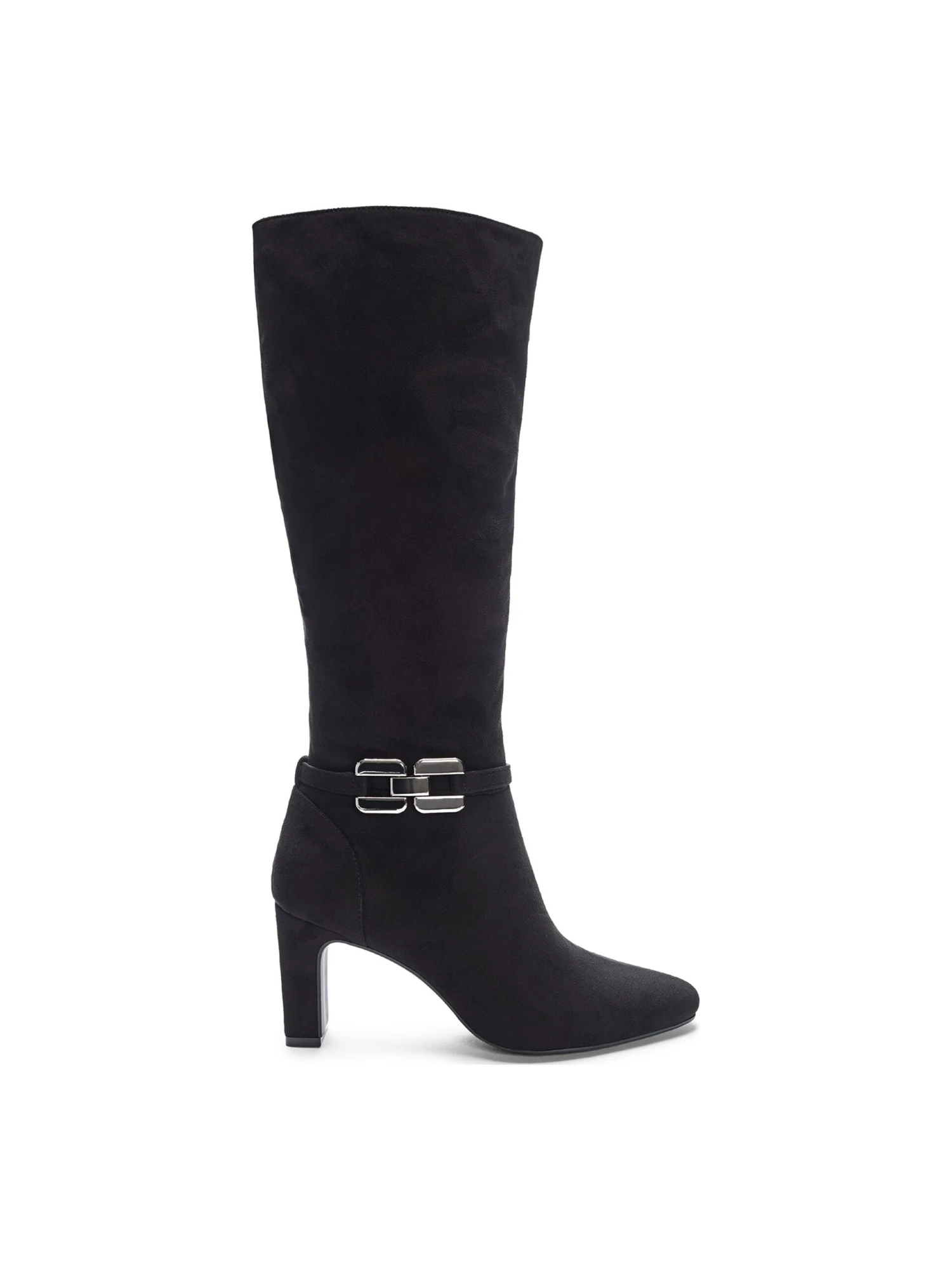 - Fabric upper in a knee high boot style with an almond toe