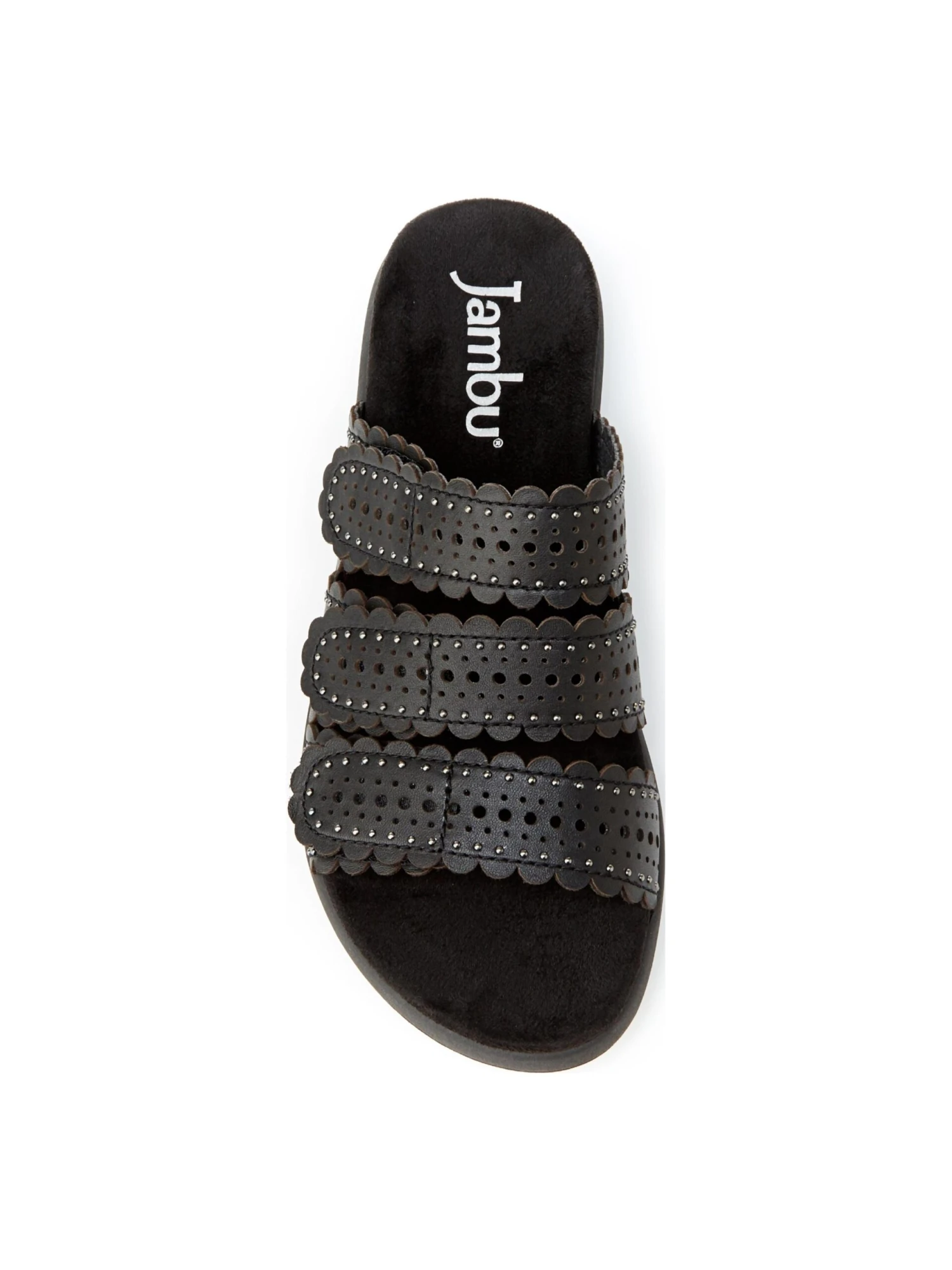 - Leather upper in a slide sandal style with a round toe