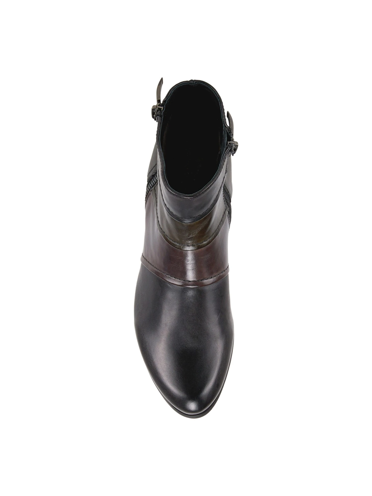 - Leather upper in an ankle boot style with an almond toe