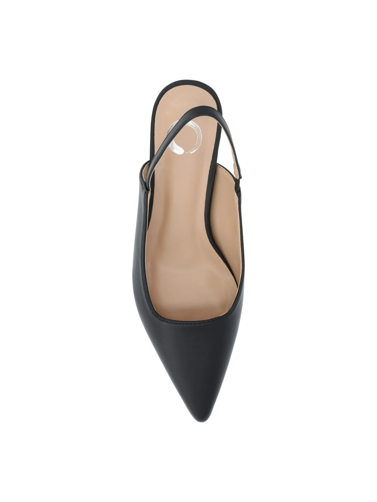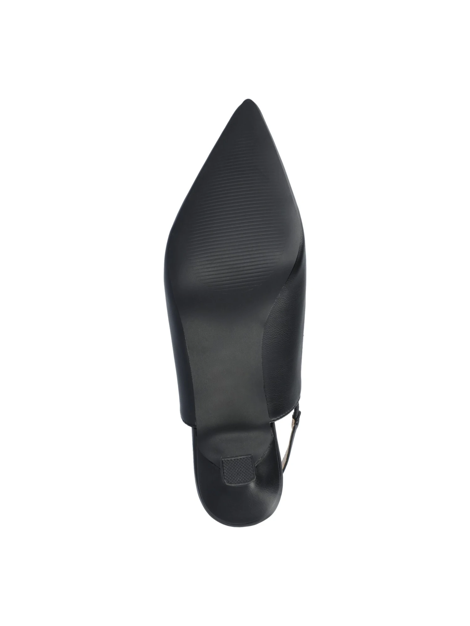 - Vegan leather upper in a slingback pump style with a pointed toe
