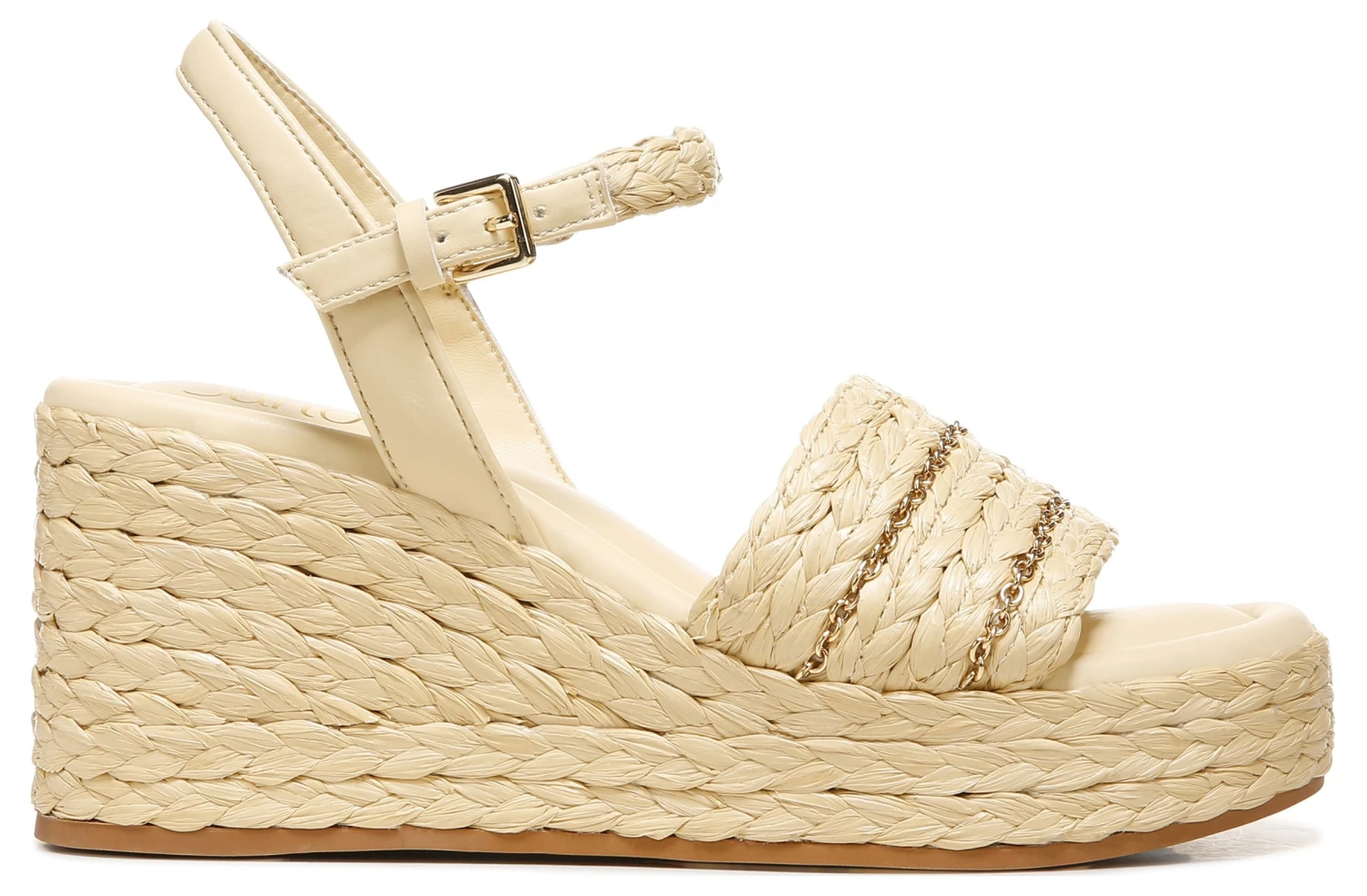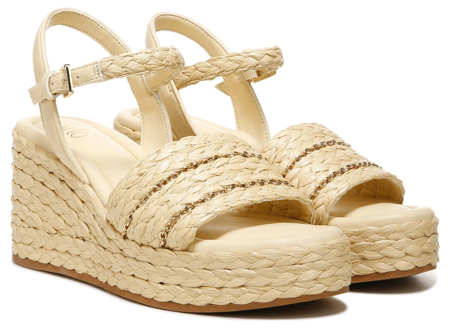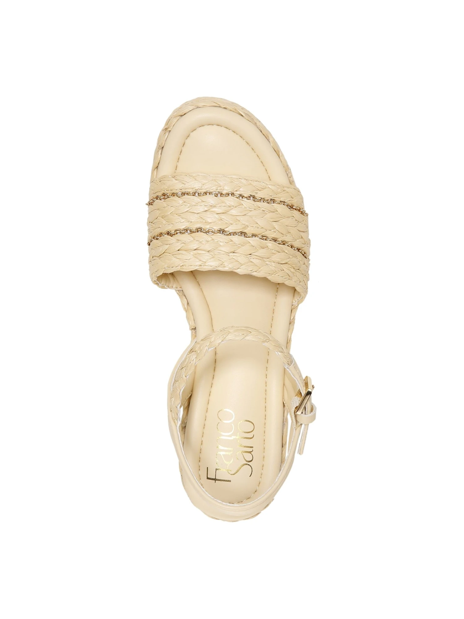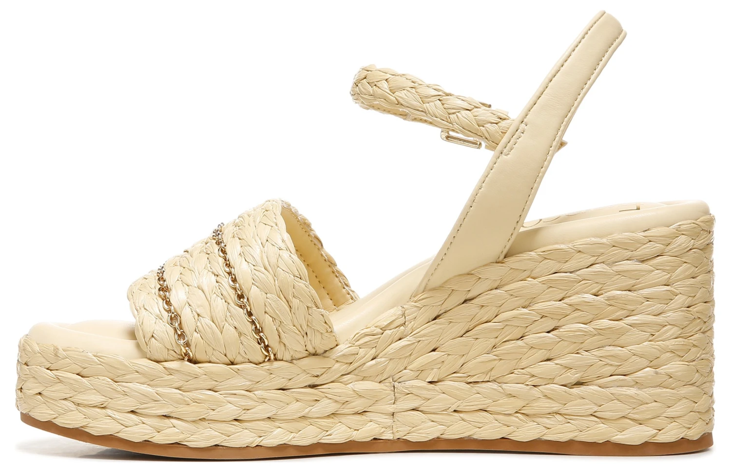 Naturally stunning, this raffia wedge sandal brings your style to new heights.