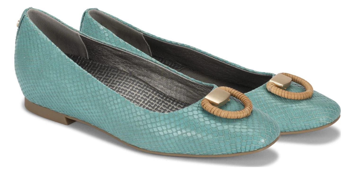 - Leather, faux-leather or fabric upper in a casual flat style with a round toe