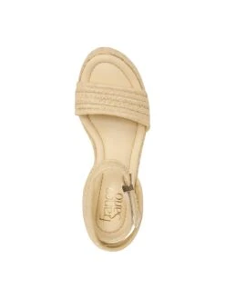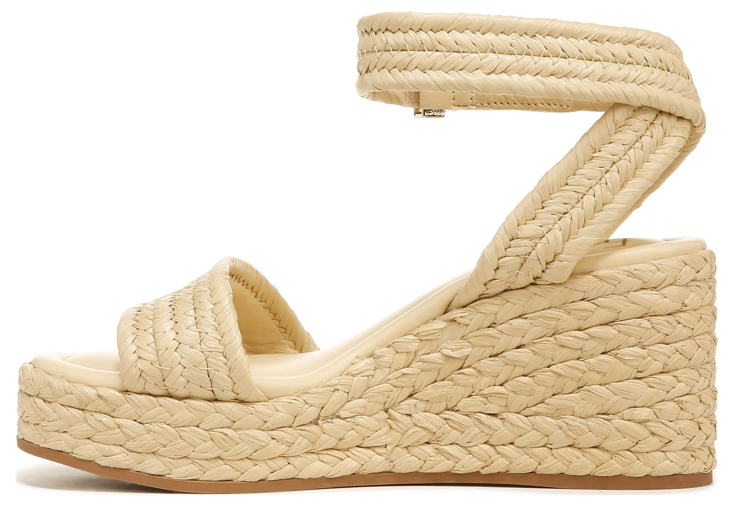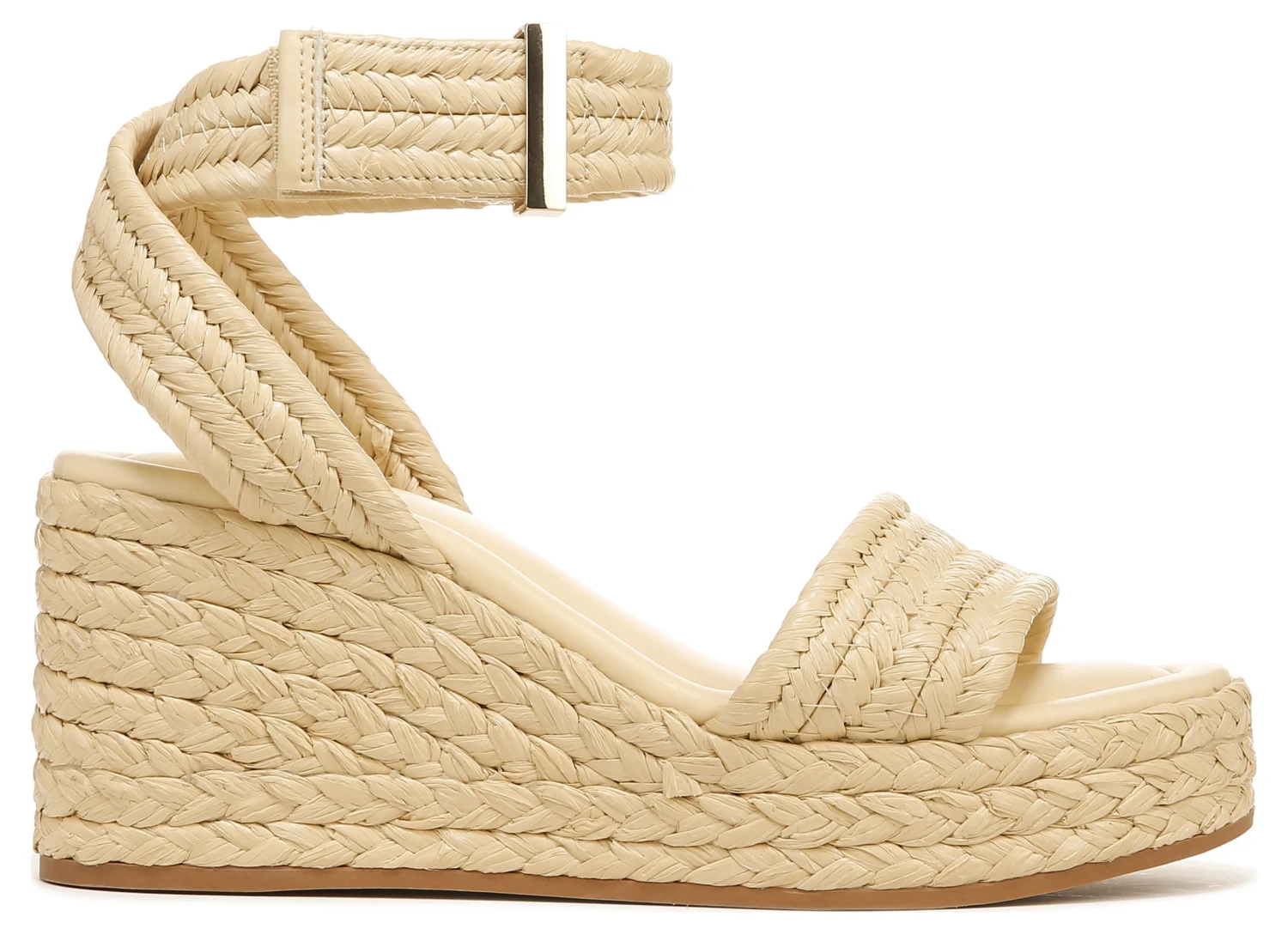 A stunning espadrille wedge sandal crafted with monochromatic woven raffia.