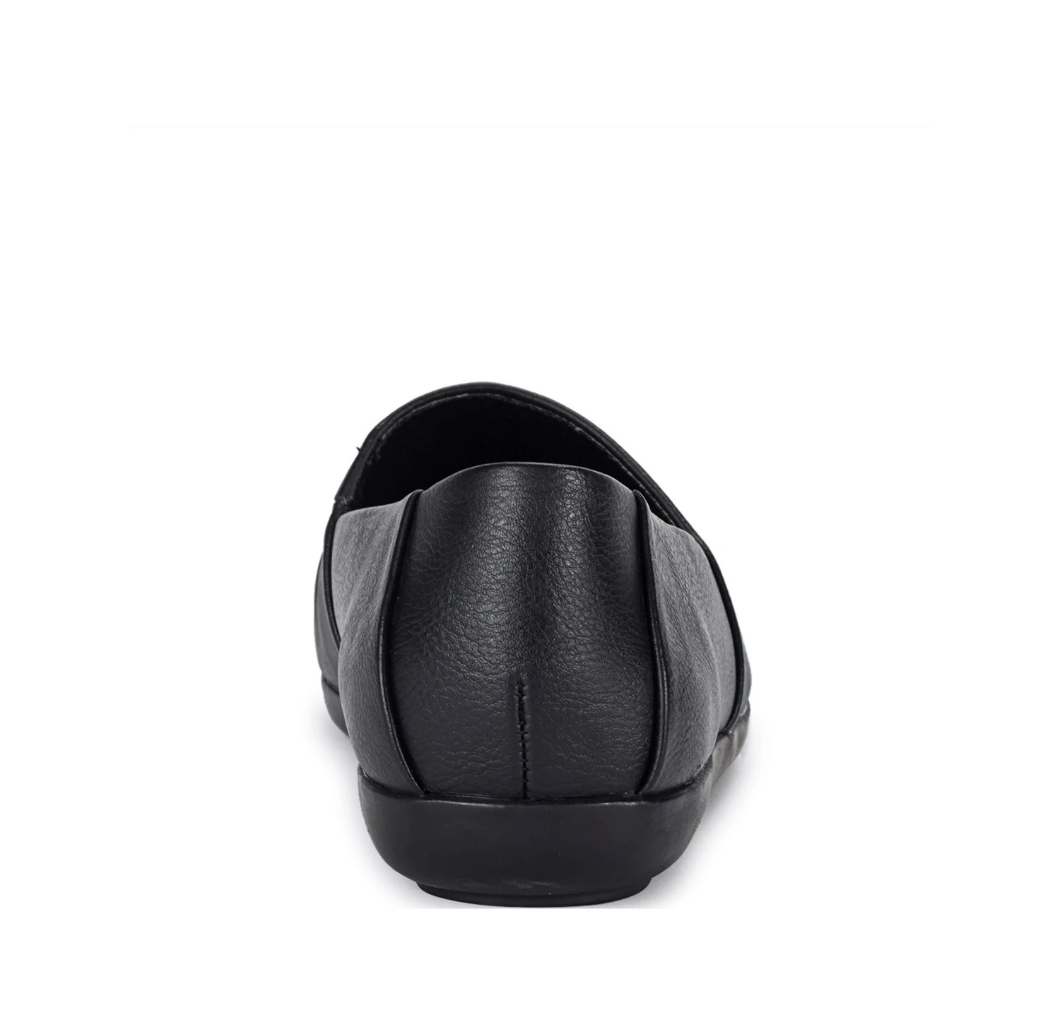 - Faux leather upper in a slip on style with a round toe