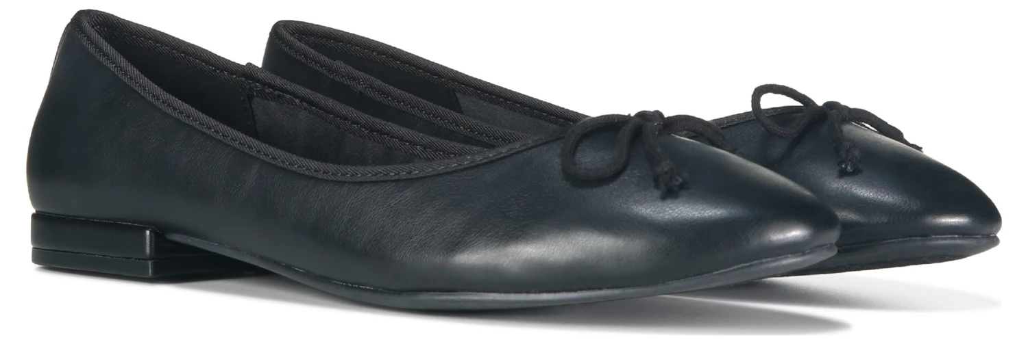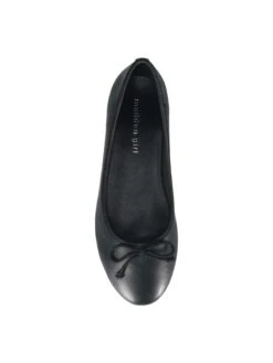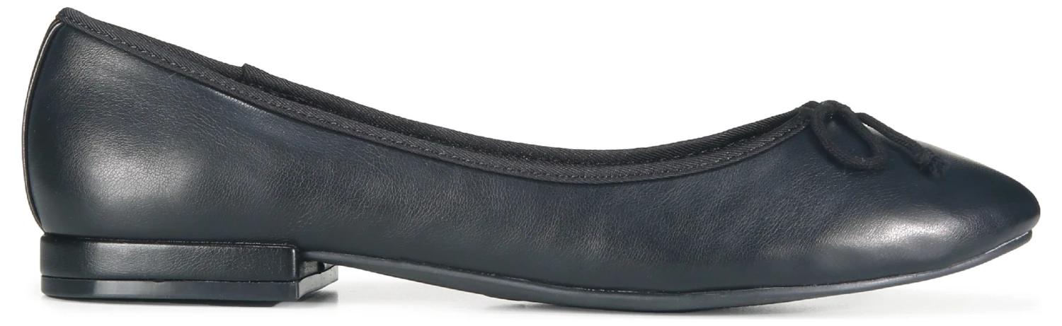 - Faux leather upper in a ballet flat style with a round toe