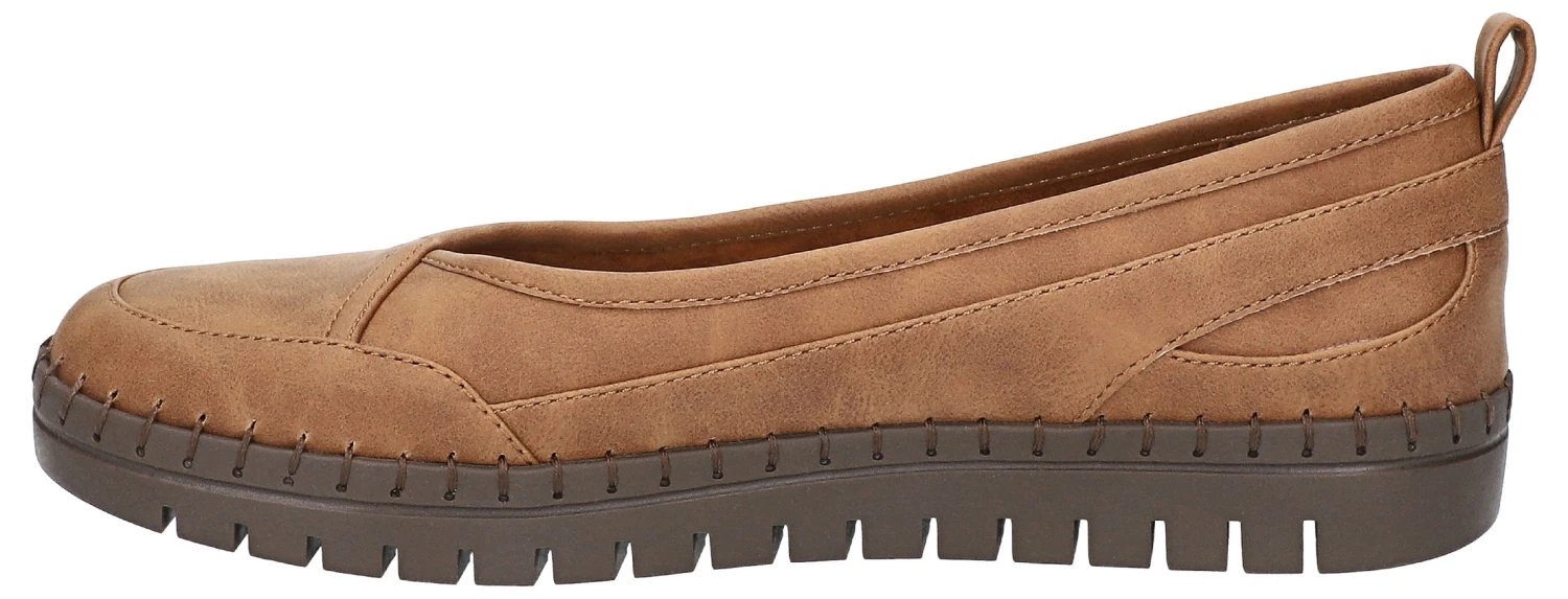 - Synthetic leather upper in a flat style with a round toe