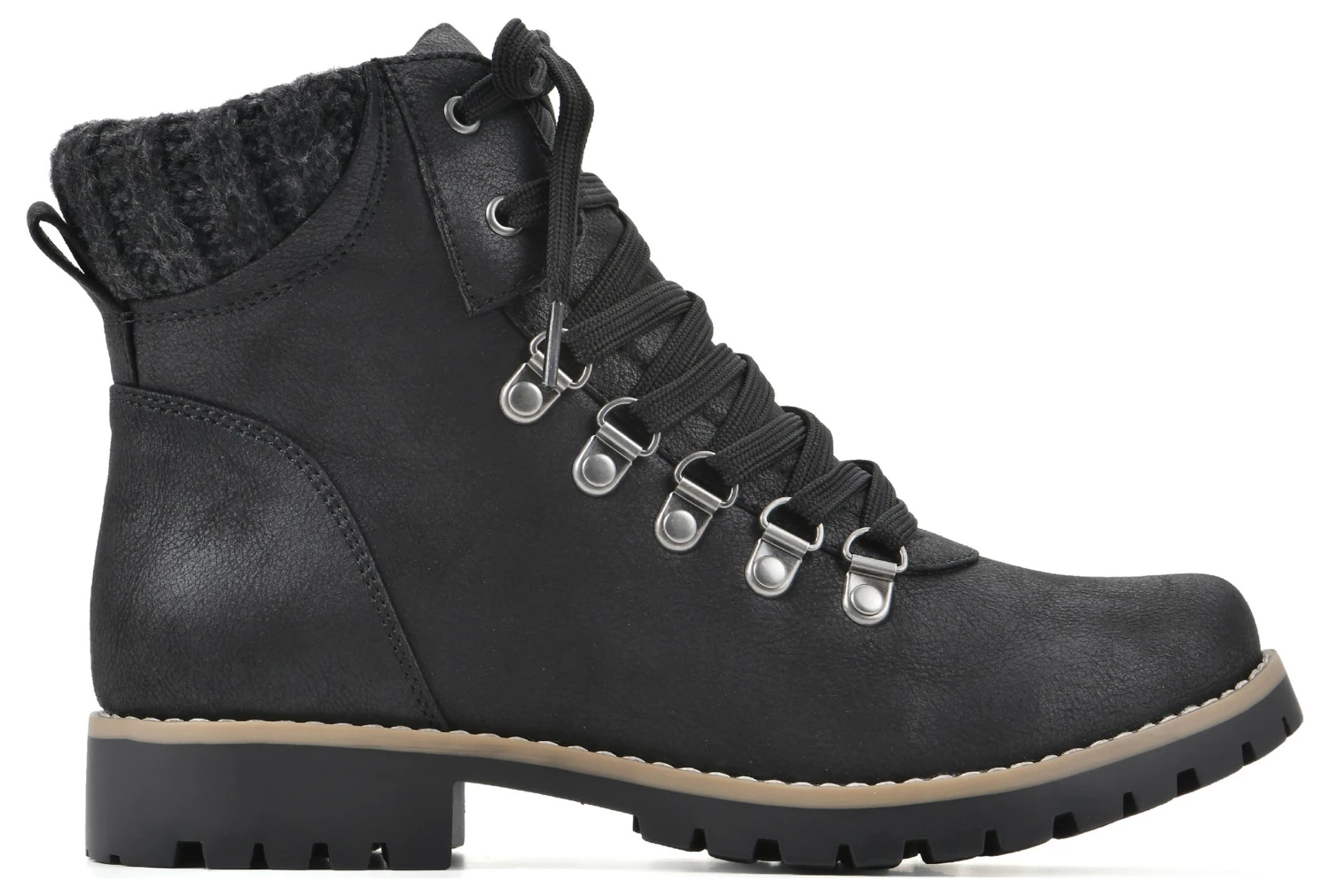 Stay warm and stylish in the Women’s Cliffs by White Mountain Primed Wide Lace Up Boot.