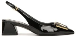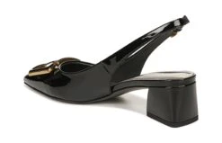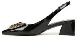 Set on a slanted block heel, these dress shoes for women feature a pointy-toe, slingback pump silhouette with feminine allure.