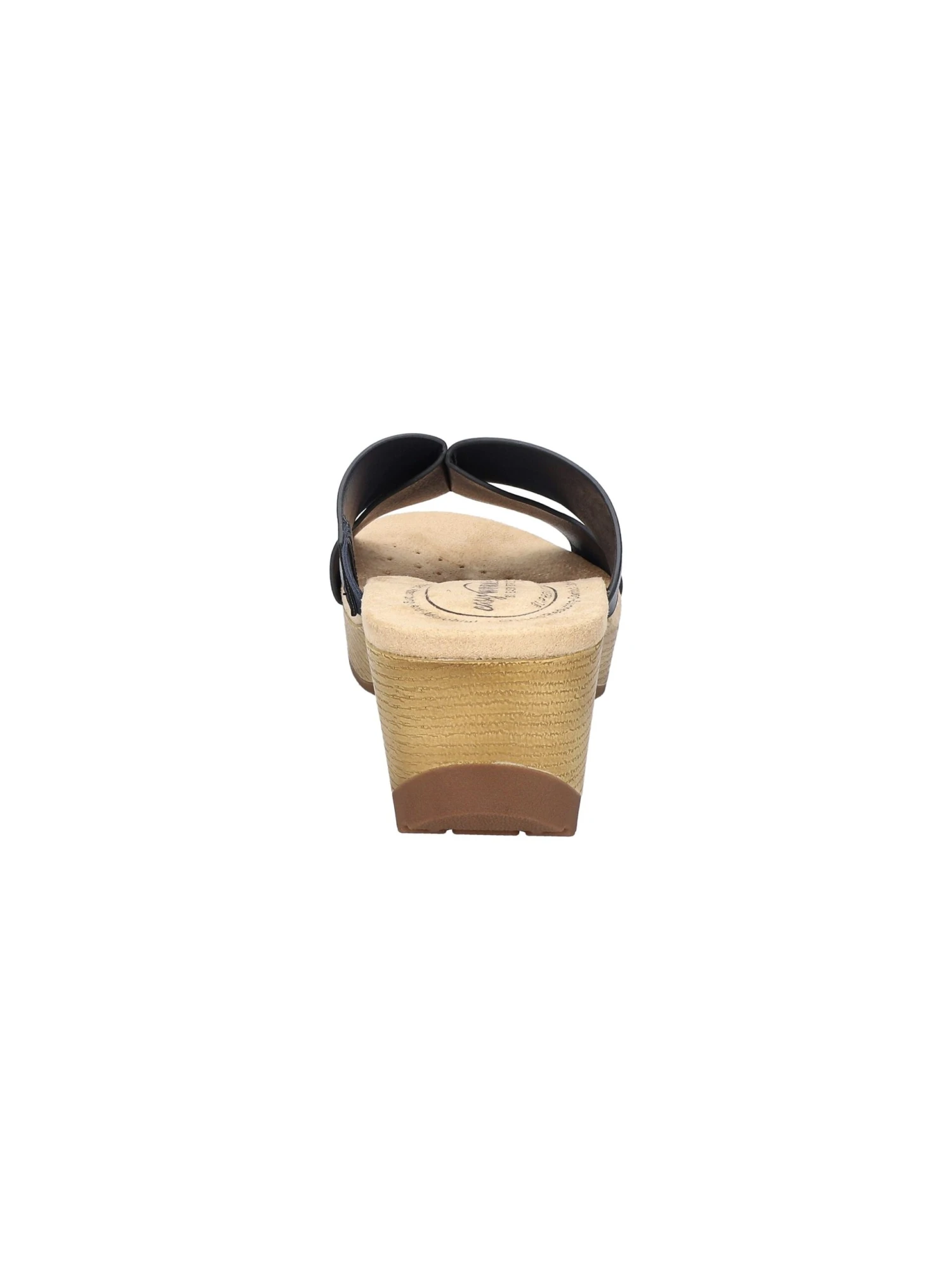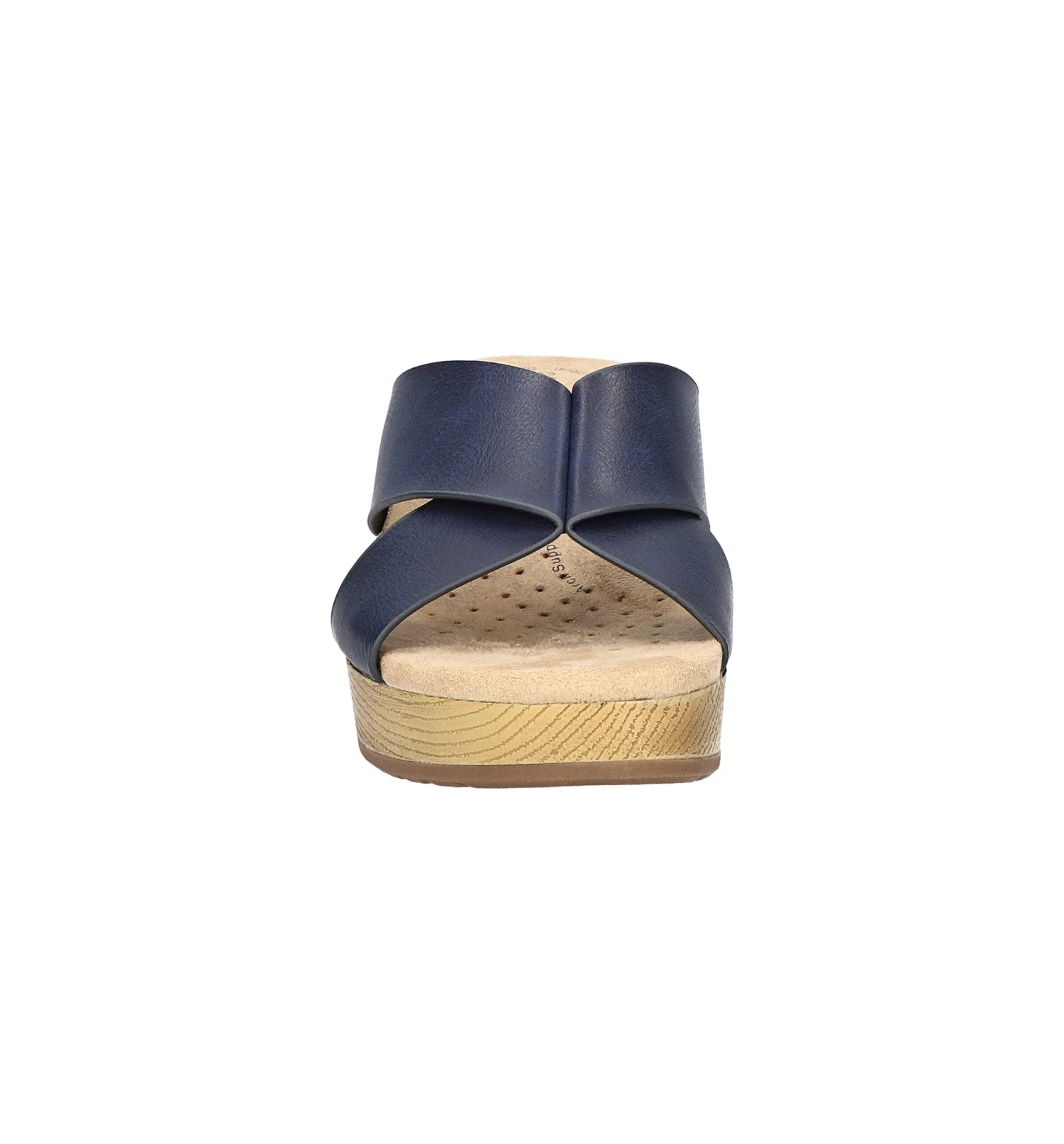 - Synthetic leather upper in a platform style with an open toe