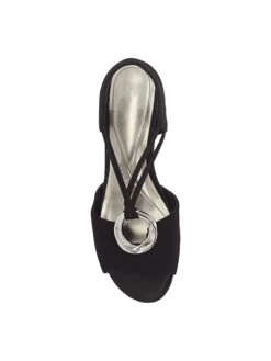 - Fabric upper in a wedge sandal style with a round toe