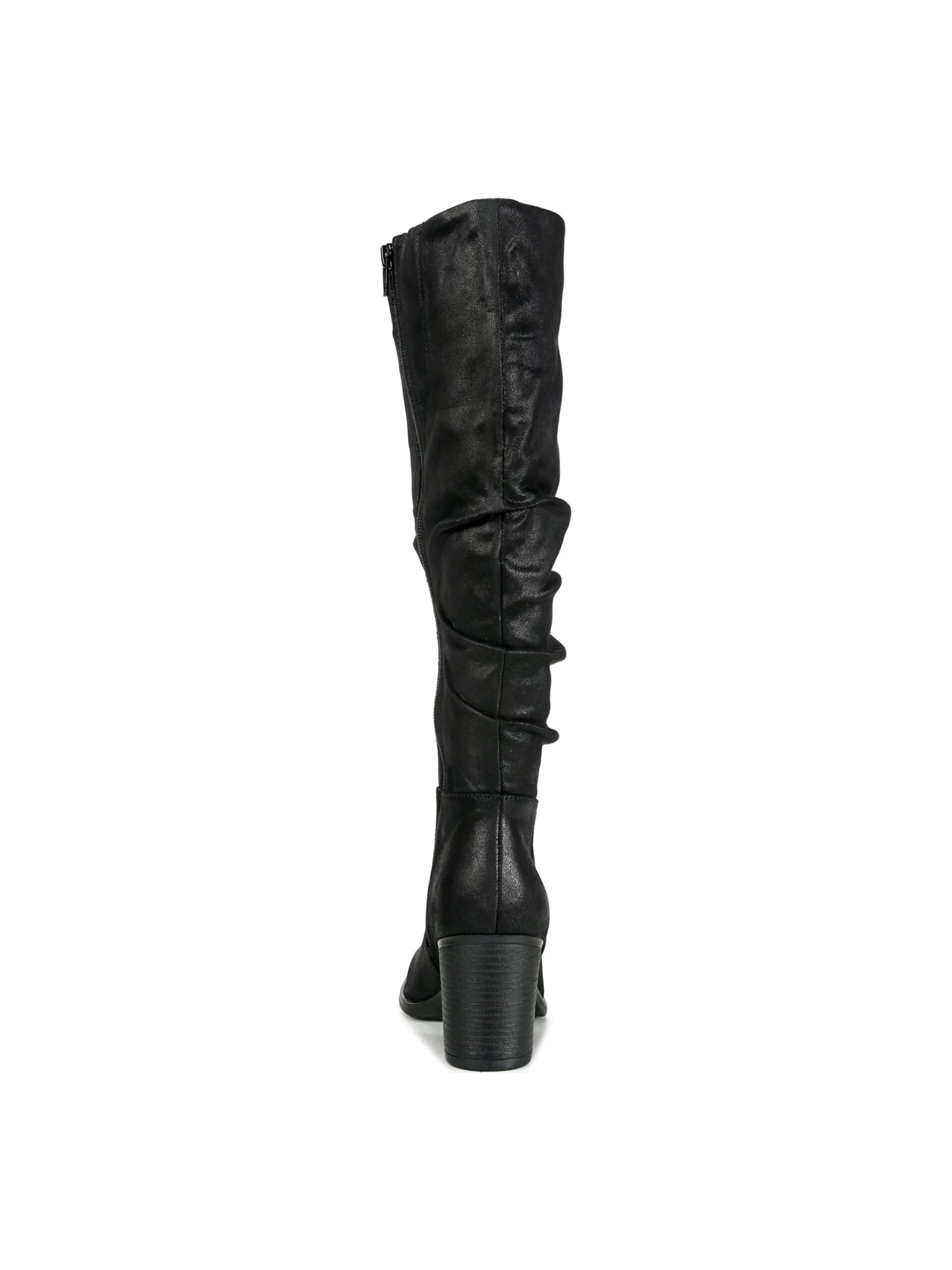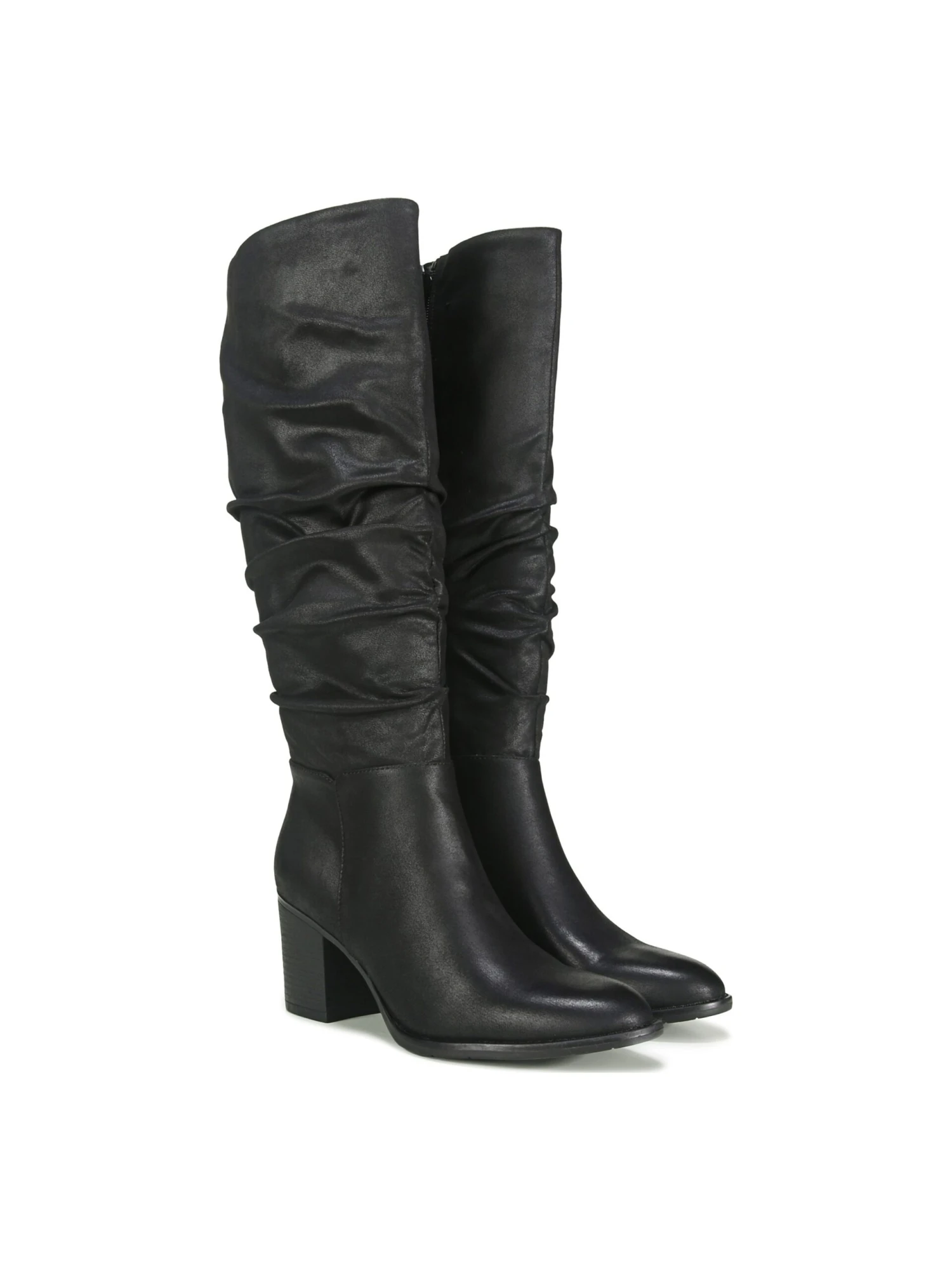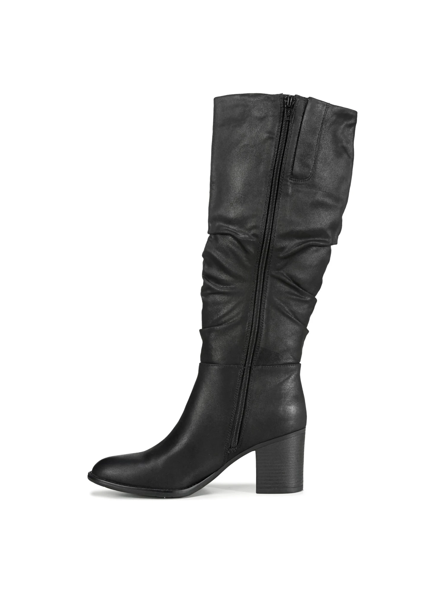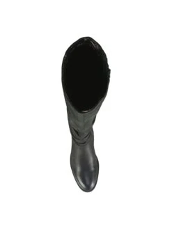 - Faux leather upper in a tall boot style with an almond