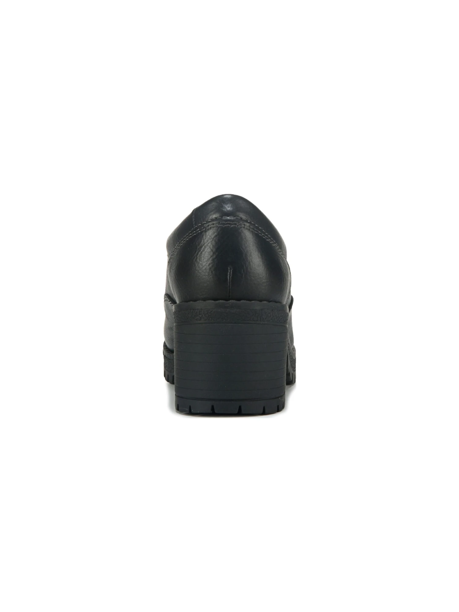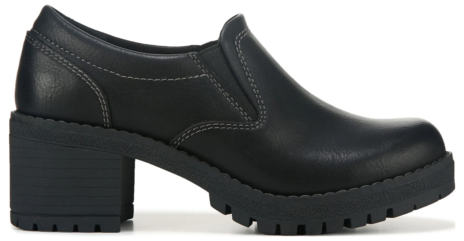 - Faux leather upper in a slip-on casual loafer style with a round toe