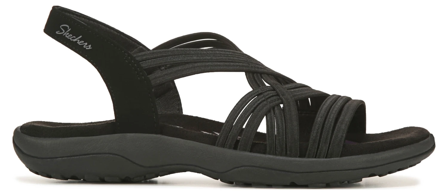Enjoy sunny days in the Women’s Skechers Reggae Slim Simply Stretch Sandal.