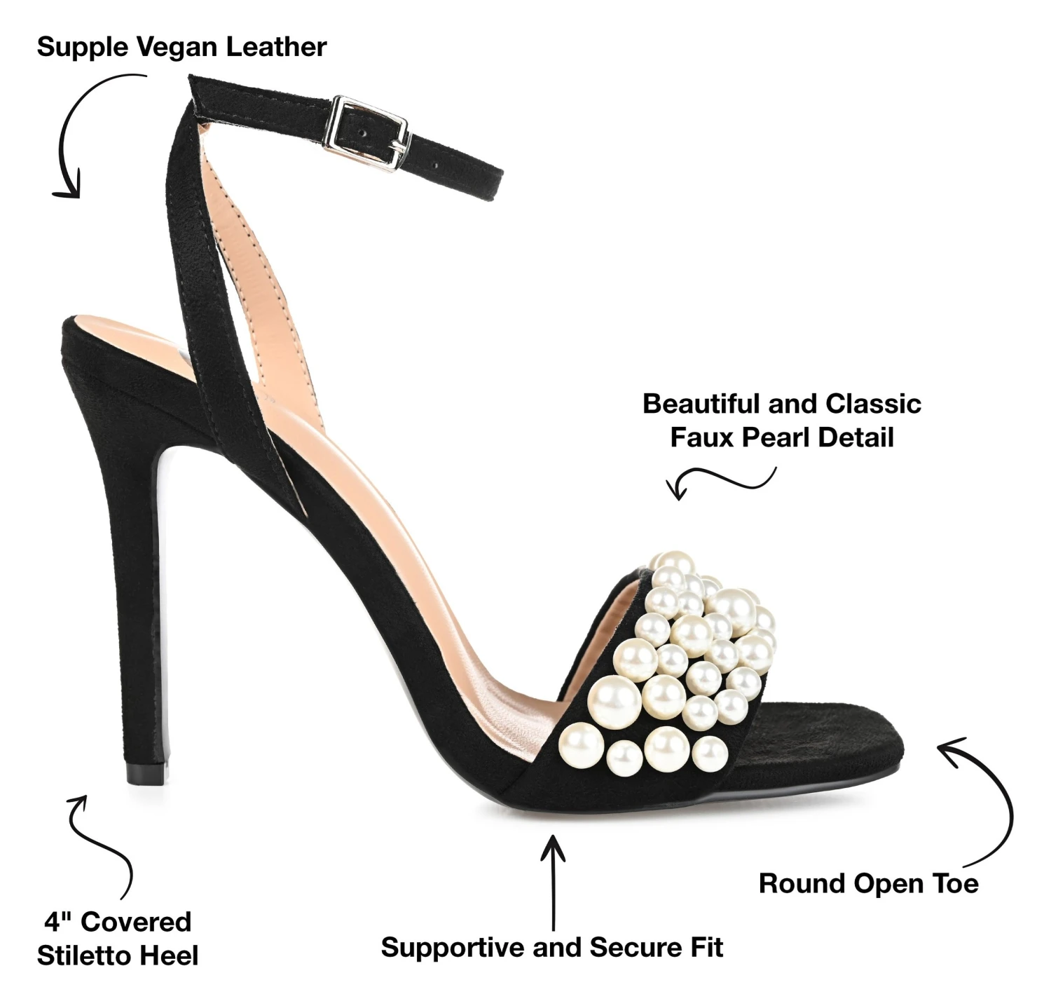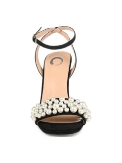 You’ll always be prepared to dazzle everyone in the room in the Women’s Romey Dress Sandal by Journee Collection. This toe strap sandal is made with a padded footbed and supple vegan leather uppers fastened by a buckled strap. Faux pearl beads crown the toe for a glamourous look.