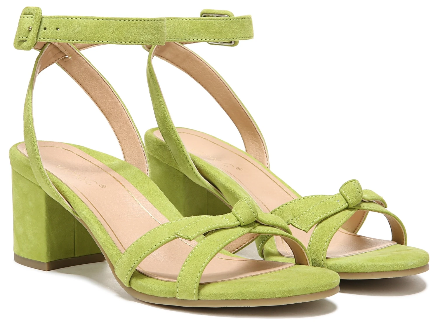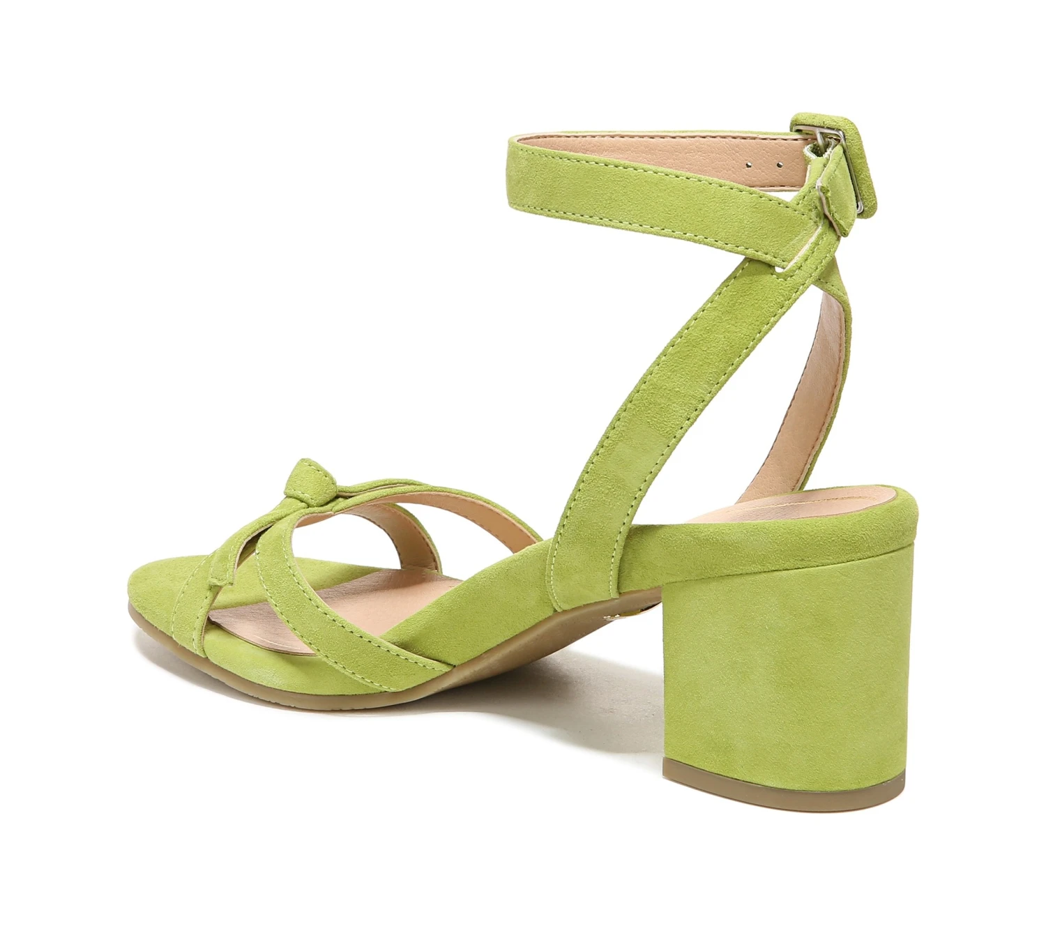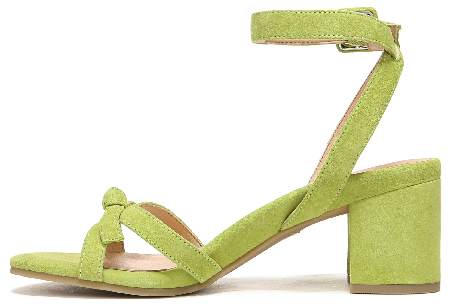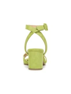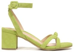 - Suede upper in a block heel sandal style with a round toe