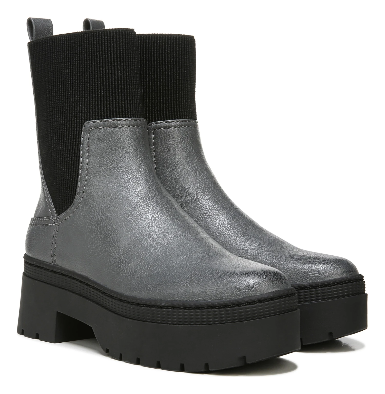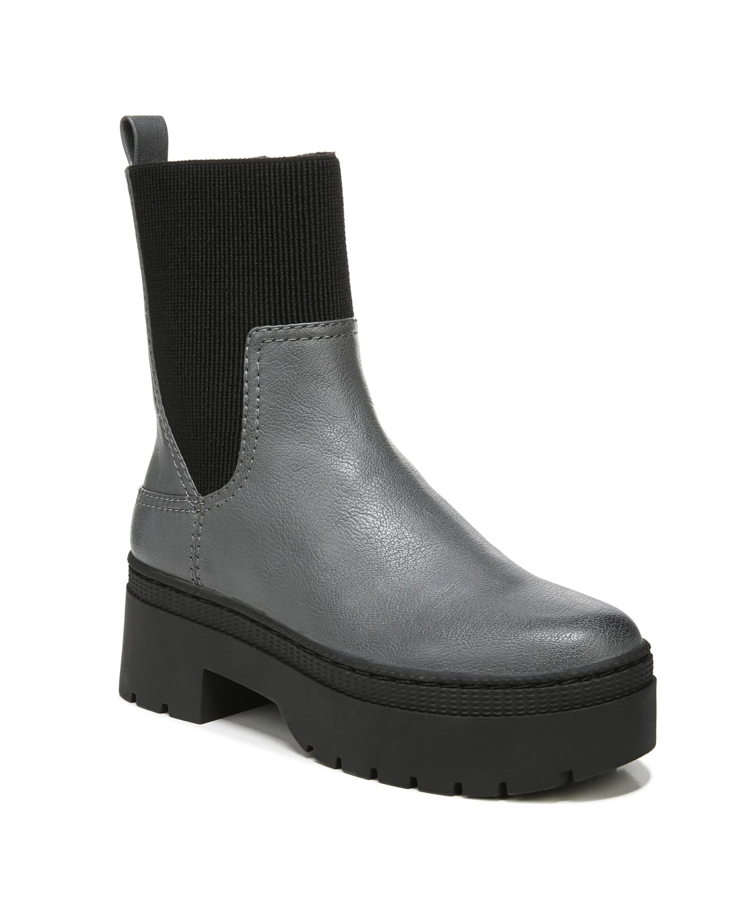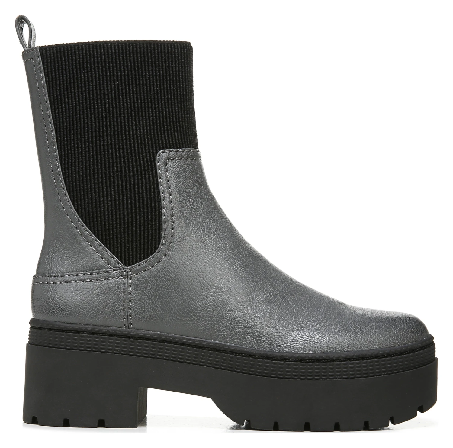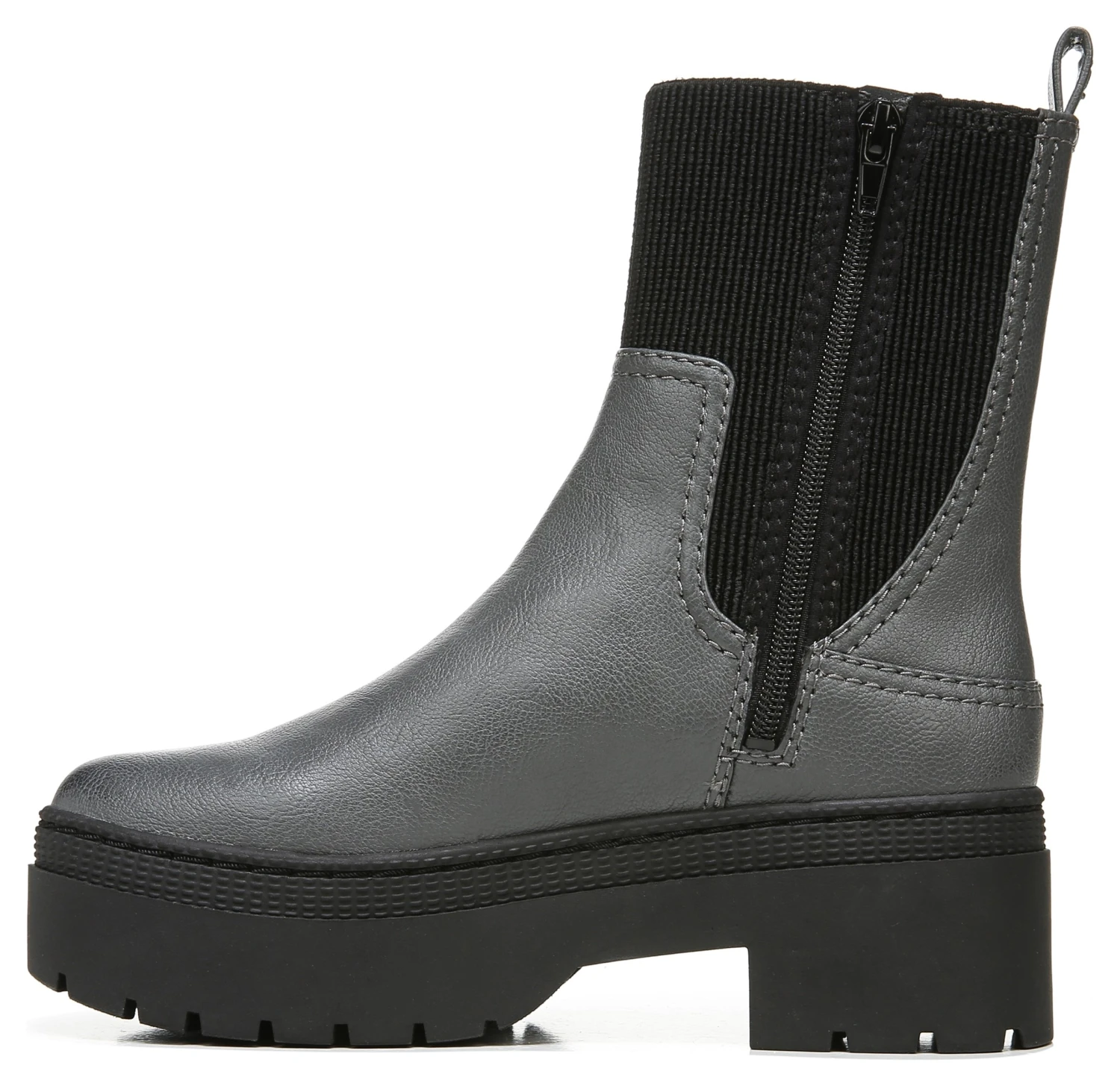 A platform lug sole, easy back pull tab, and stretch features create a cleverly crafted bootie for lives well wandered.