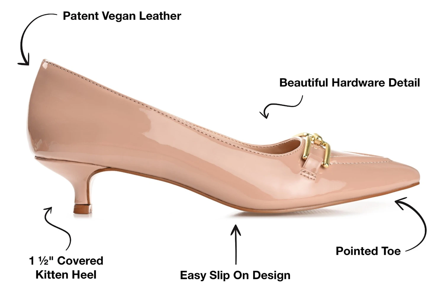 - Durable man-made outsole with a 1.5″ kitten heel