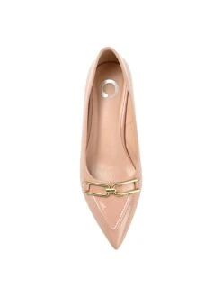 - Patent faux leather upper in a pump style with a