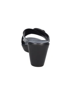 - Synthetic upper in a wedge sandal style with a round toe