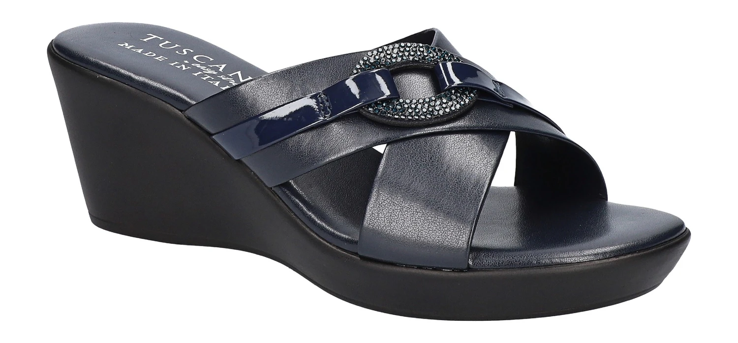 Add a touch of sophistication to your look with the Women’s Tuscany by Easy Street Sabina Narrow/Medium/X-Wide Wedge Sandal.