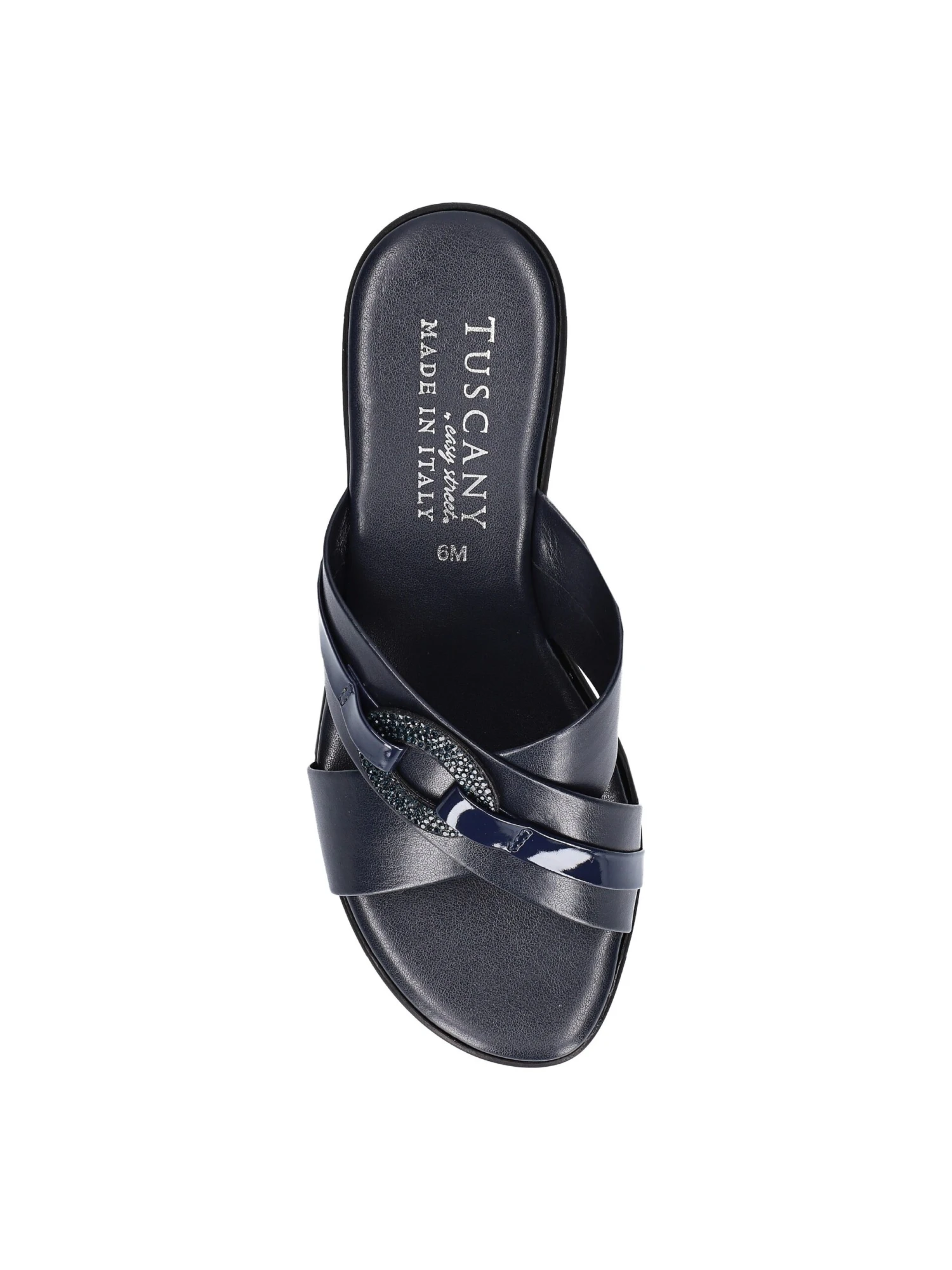 - Criss cross straps with oval ornamentation detail on upper