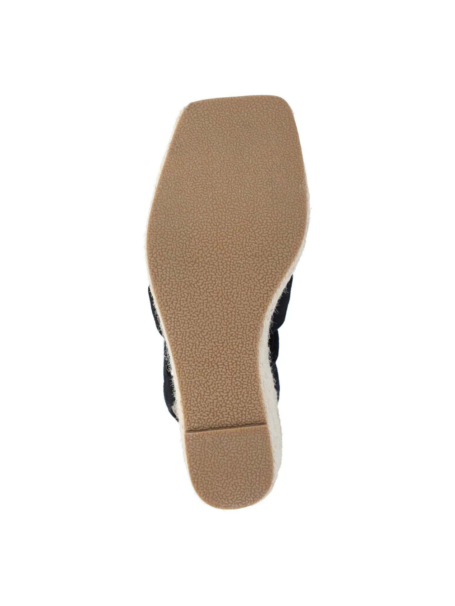 - Canvas upper in a espadrille wedge sandal with an open square toe
