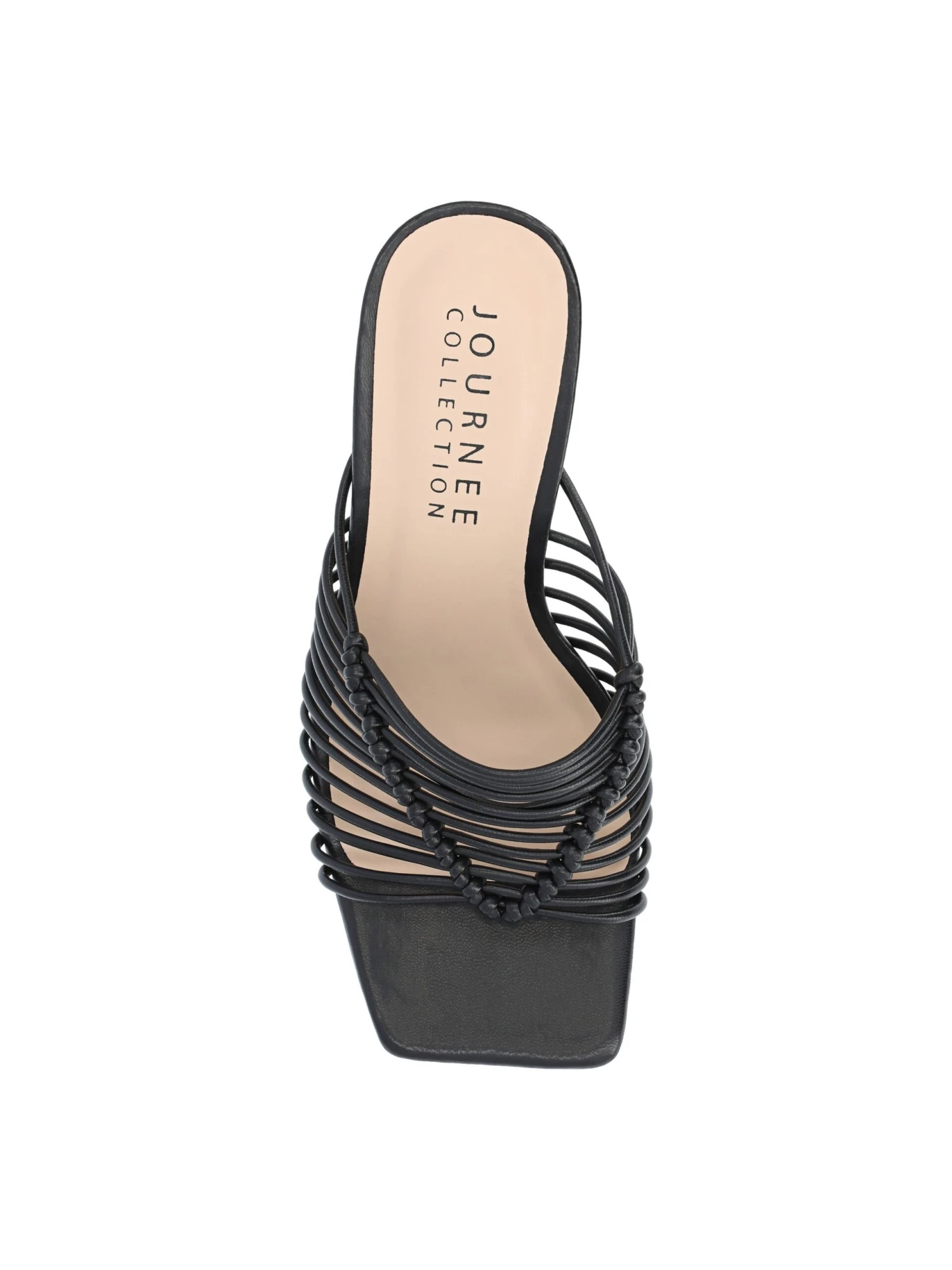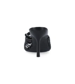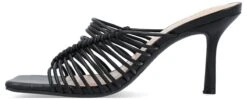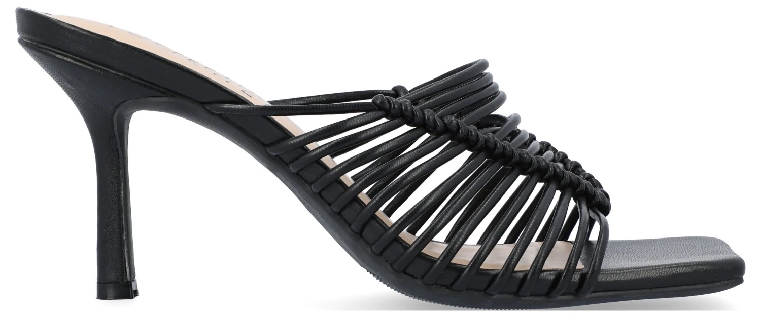 - Vegan leather upper in a slide style dress sandal with an open square toe