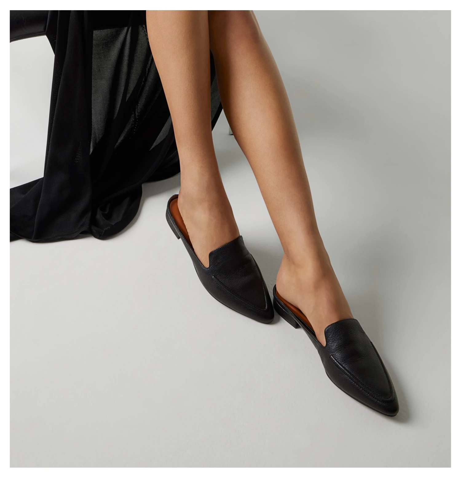 Minimalist mules for women. With a sleek, loafer-inspired silhouette, these womens flat shoes add a tailored touch to your look, in and out of office.