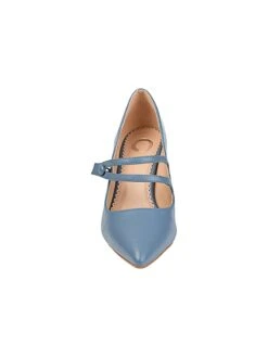 - Vegan leather uppers in a mary jane pump style with a pointed toe