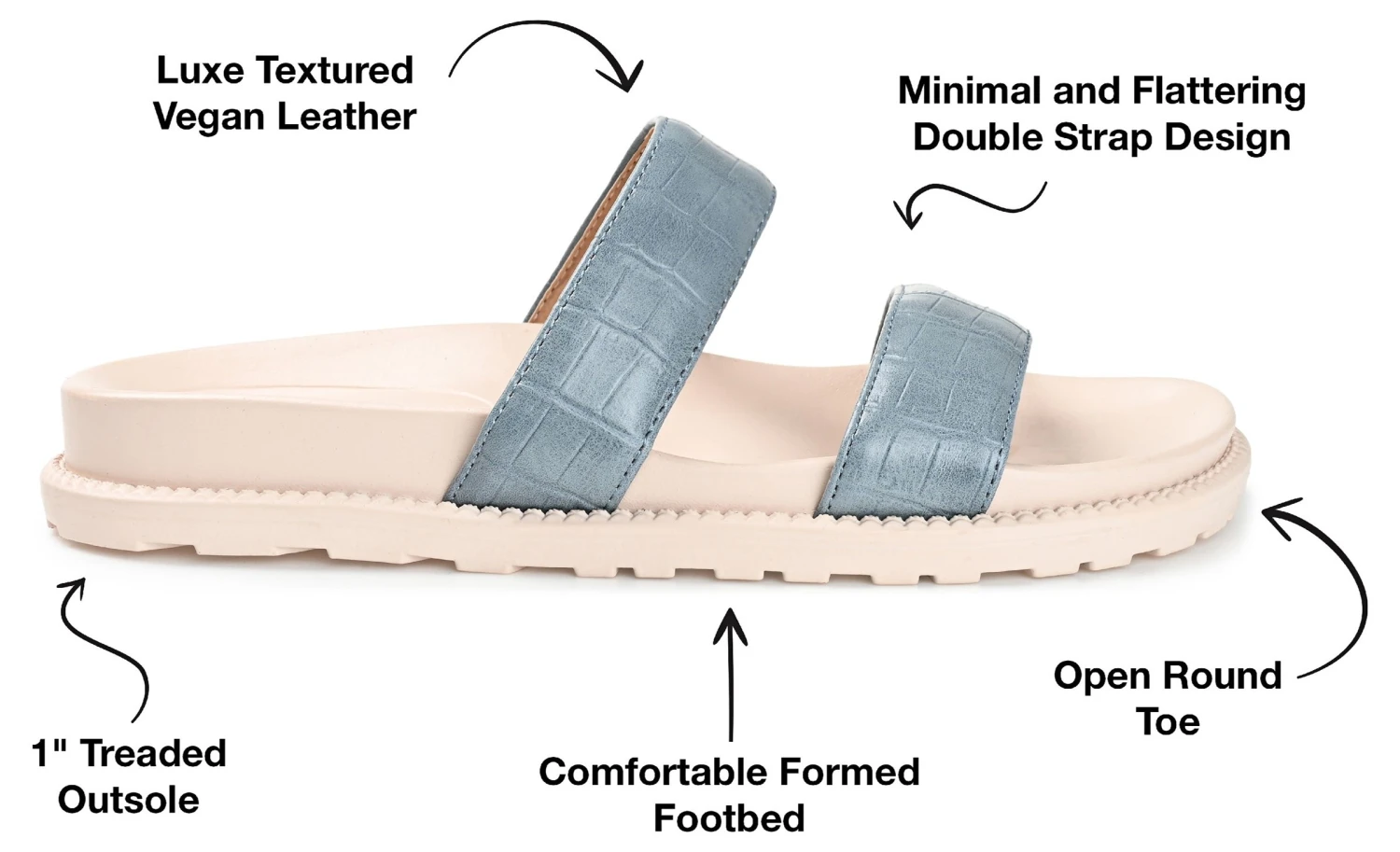 - Double straps with bold croc-inspired details.
