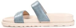 - Vegan leather upper in a flat sandal style with an open toe.