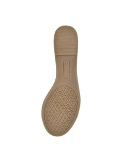 - Faux leather upper in a ballet flat style with a round toe.