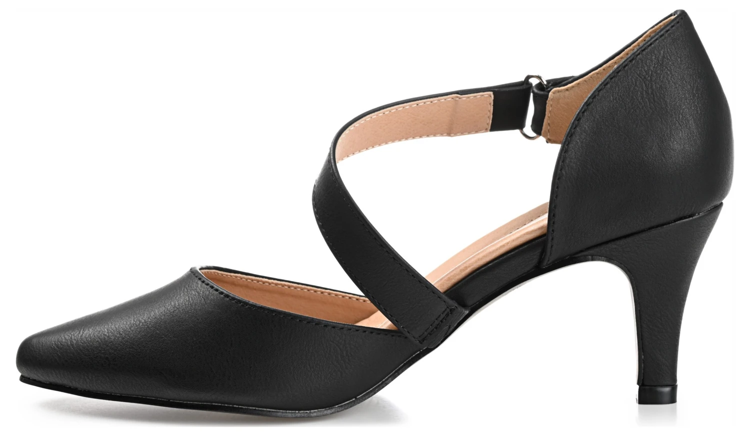 - Vegan leather upper in a d’Orsay pump style with a pointed toe