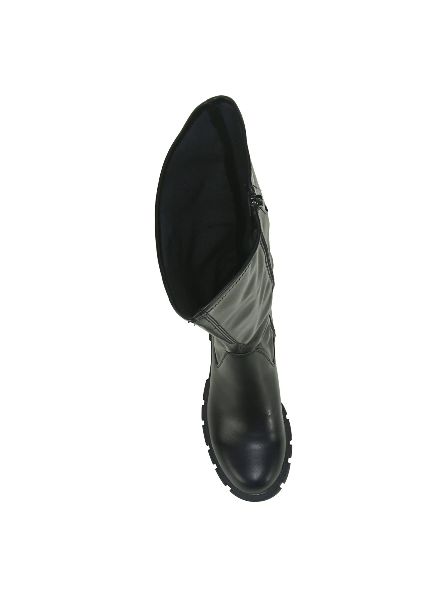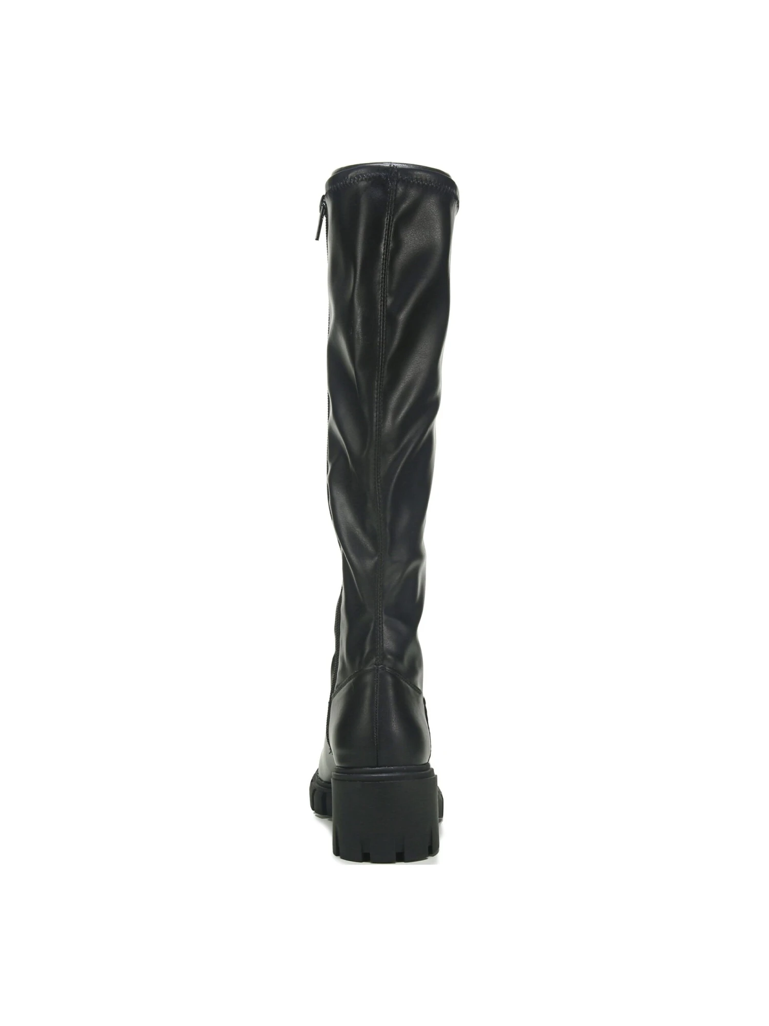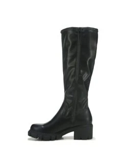 - Faux leather upper in a tall boot style with a Round toe