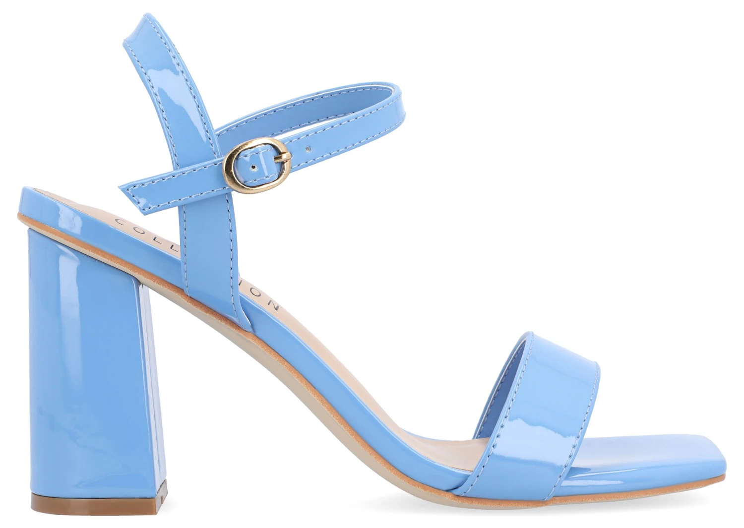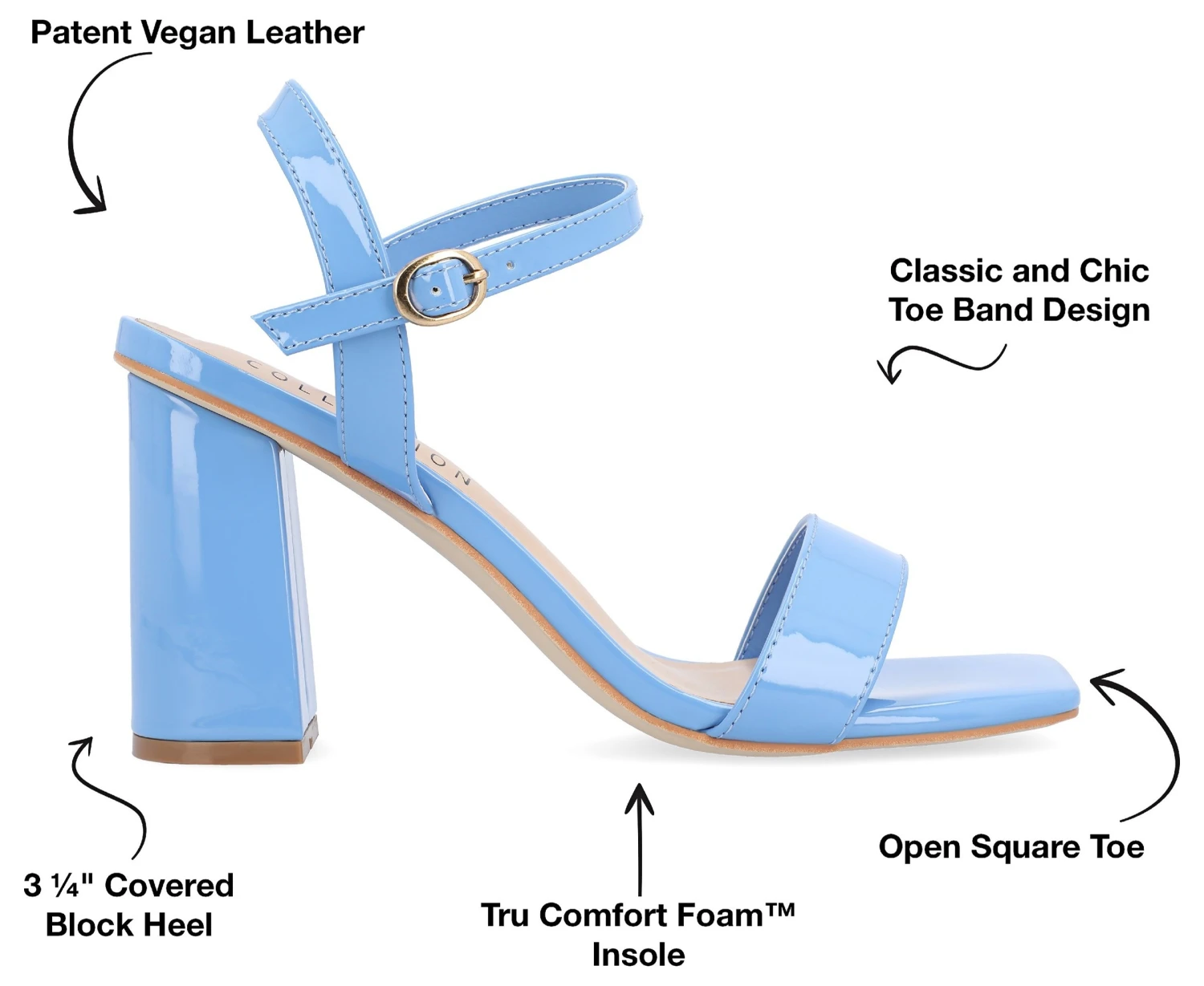 - Vegan leather upper in a dress sandal with an open square toe