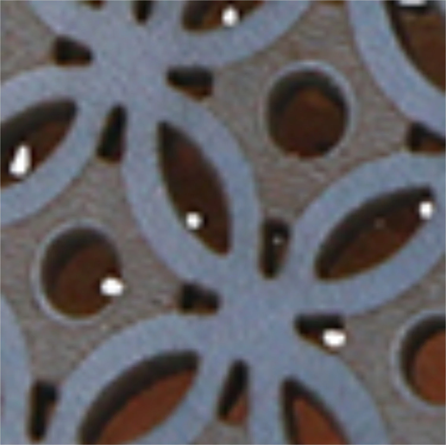 - Two-tone silhouette with geometric cut-outs and etching