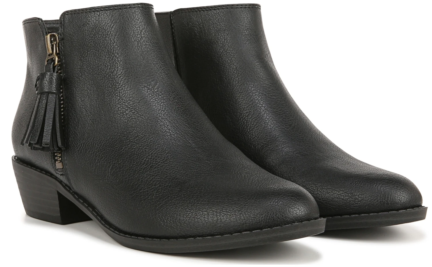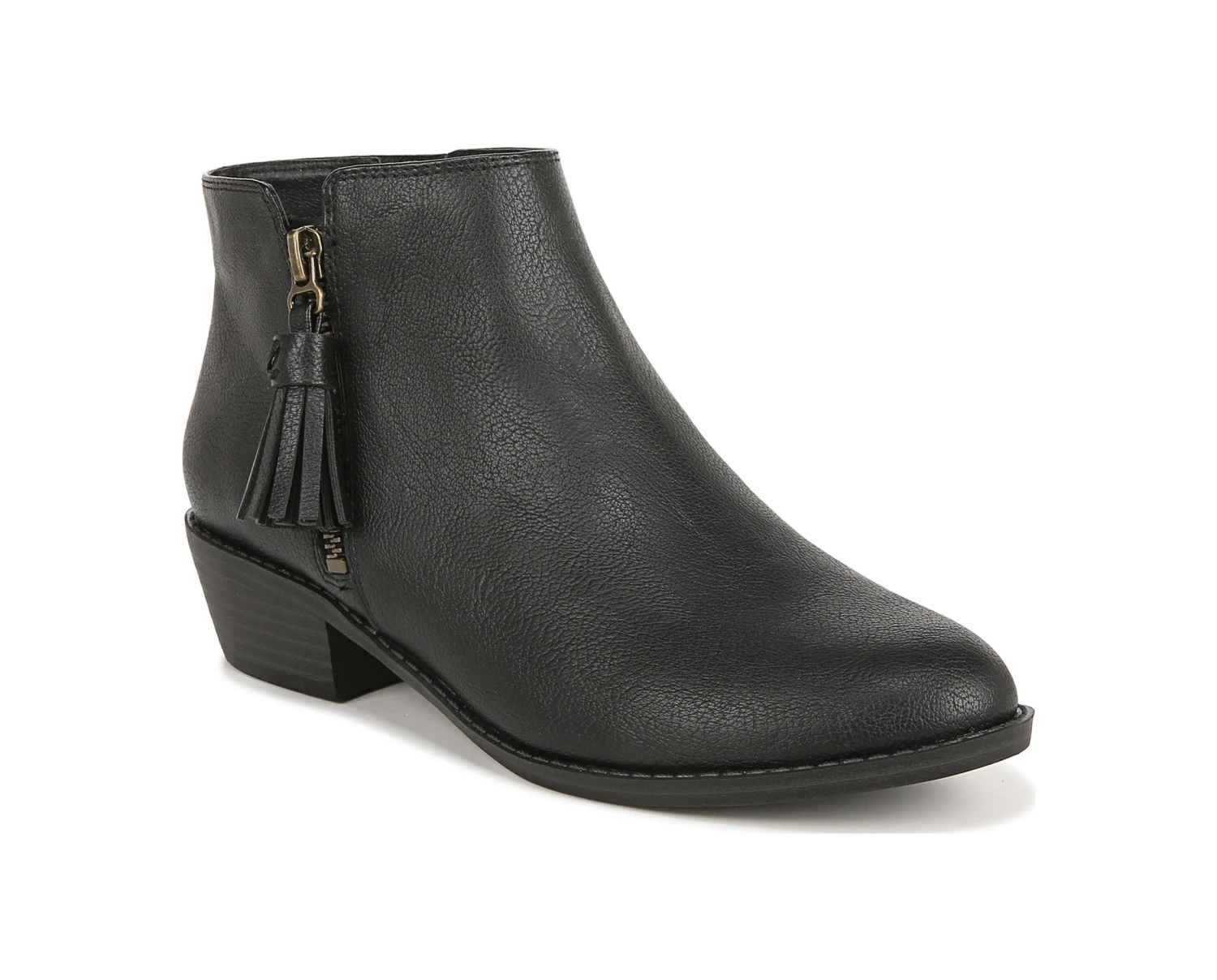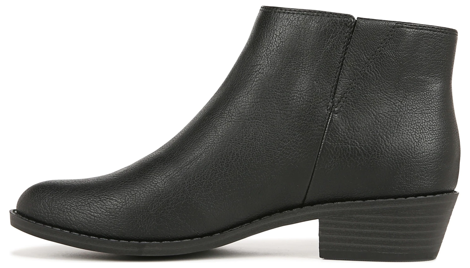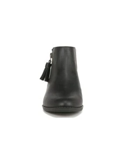 - Faux leather upper in a ankle boot style with a round toe