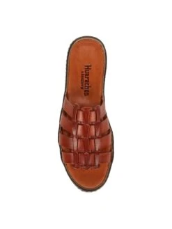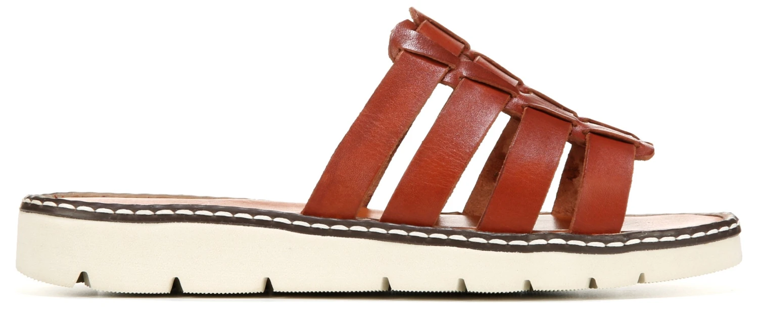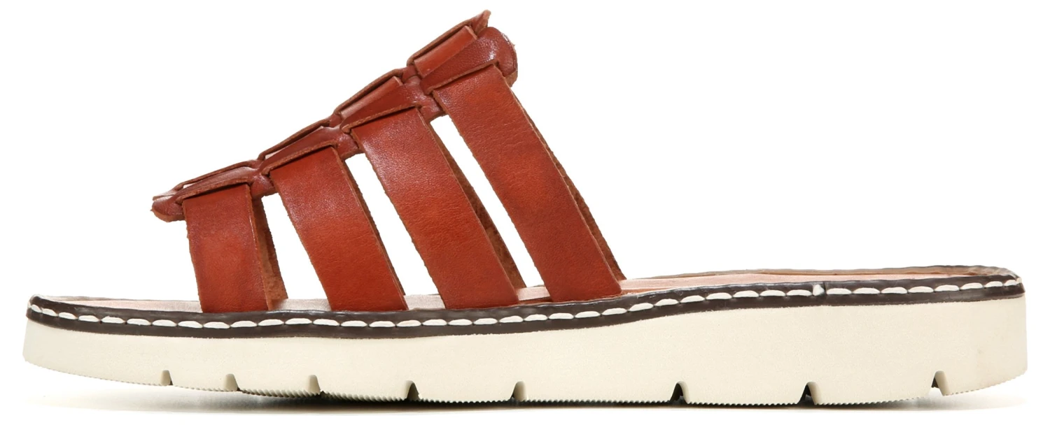 - Leather upper in a slide sandal style with an open toe
