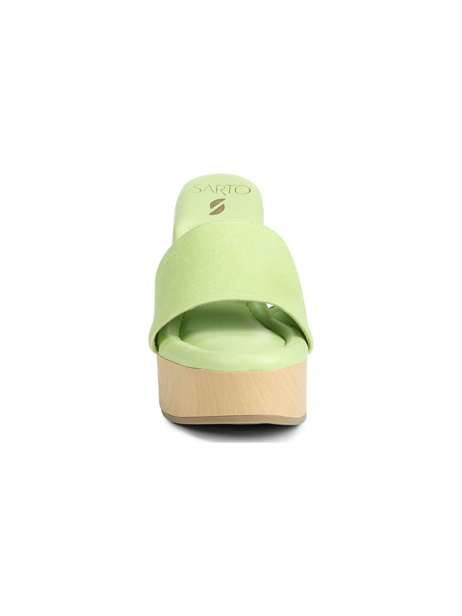 Next-level and so luxe, this platform sandal with a wooden heel is the epitome of modernity.