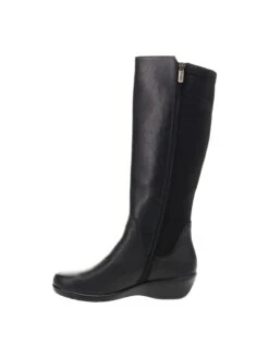 - Leather upper in a tall boot style with a round toe